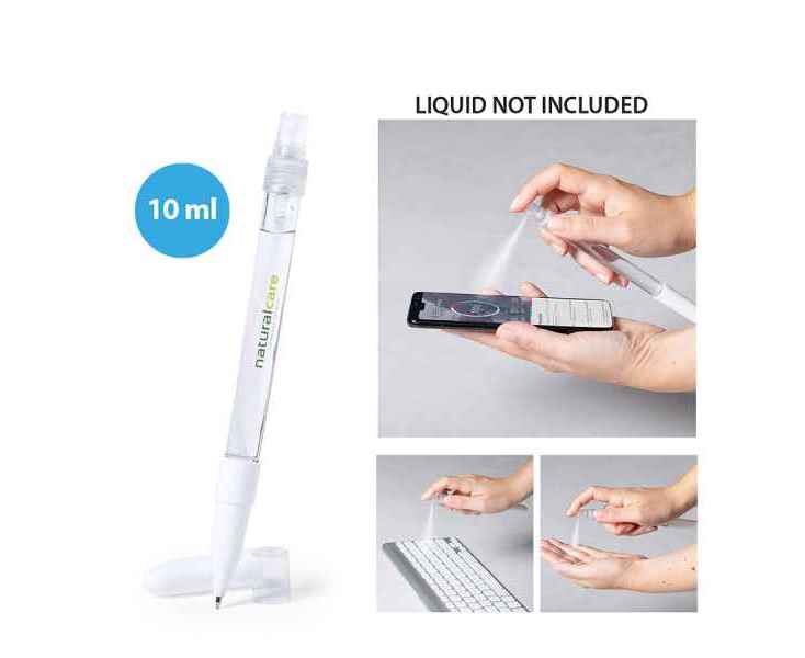 Ручка с перезаряжаемым распылителем и защитным колпачком. Емкость распылителя 10 мл. Жидкость в комплект не входит. Изготовлен из прочного АБС-пластика. Синие чернила.