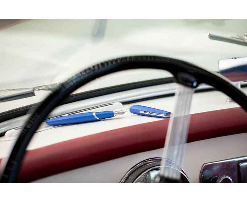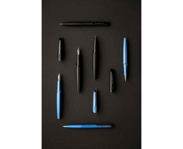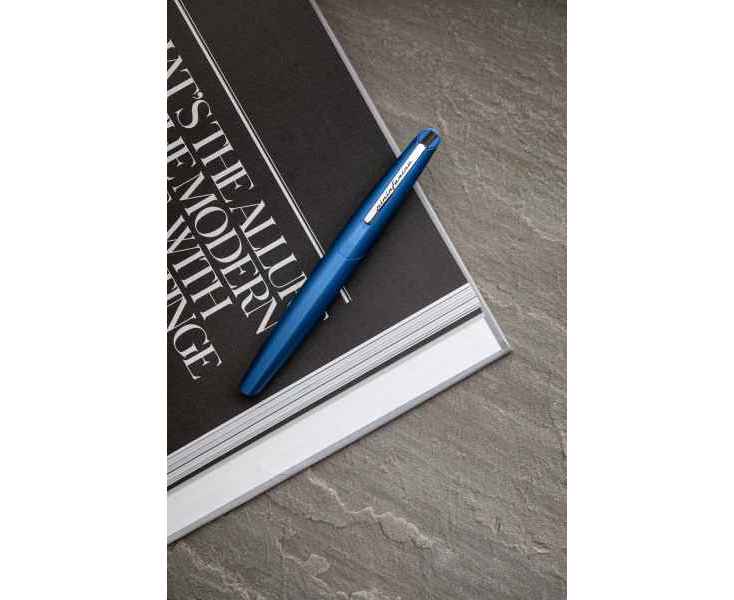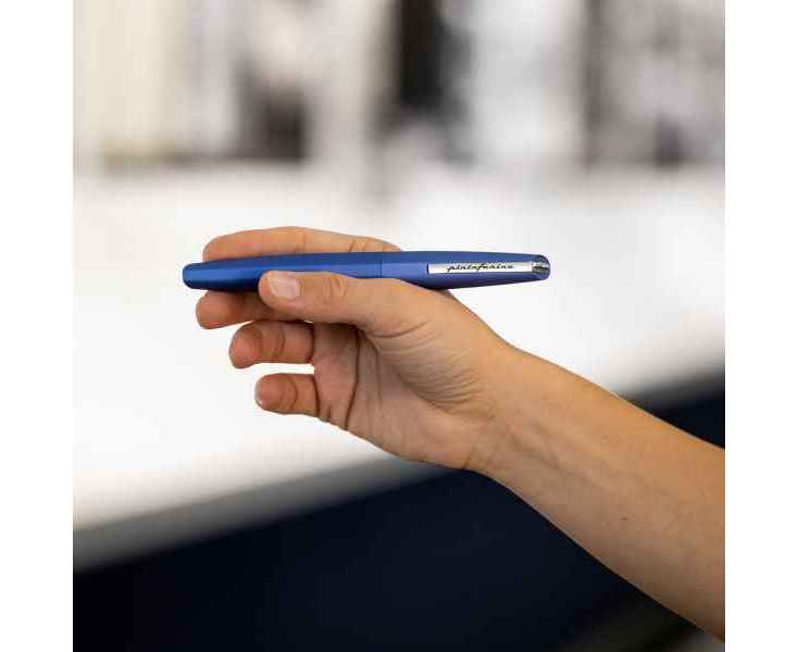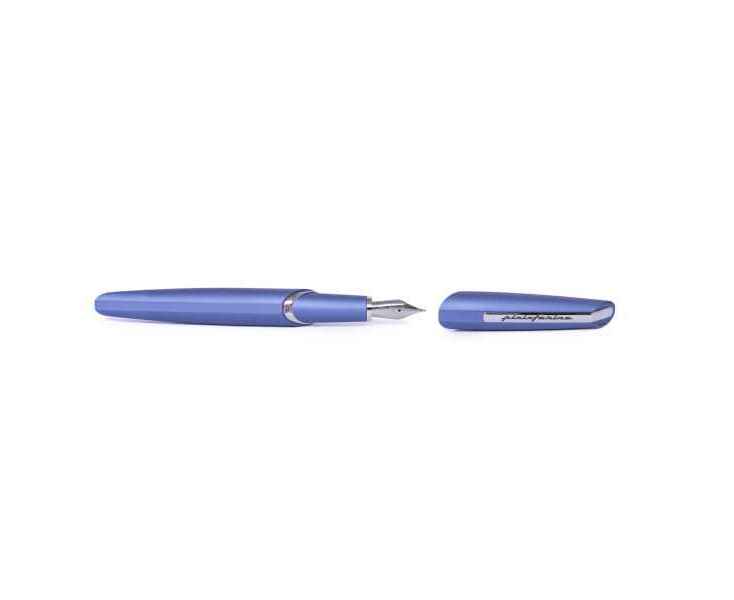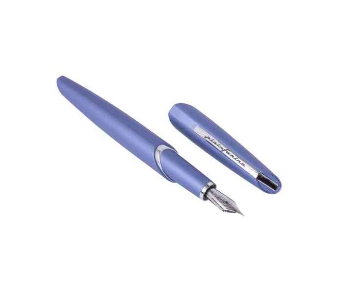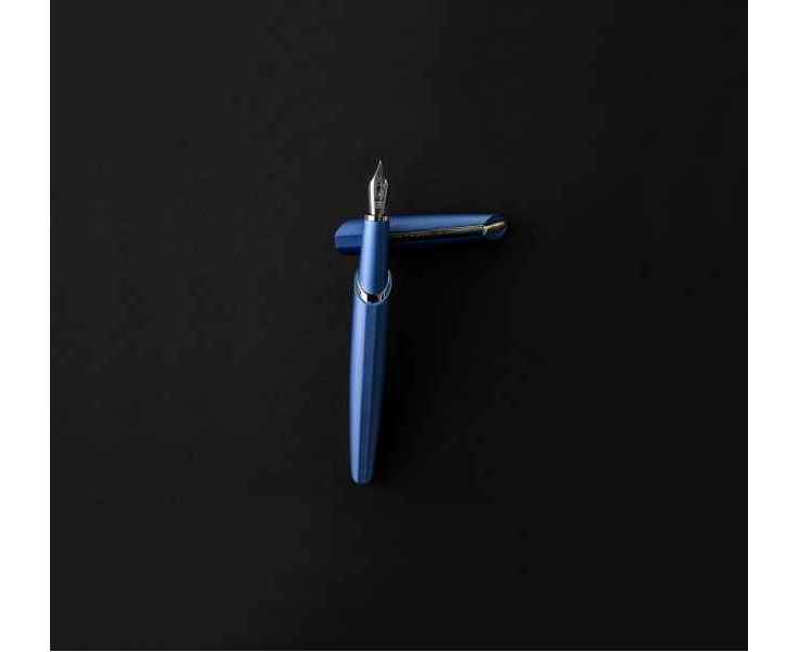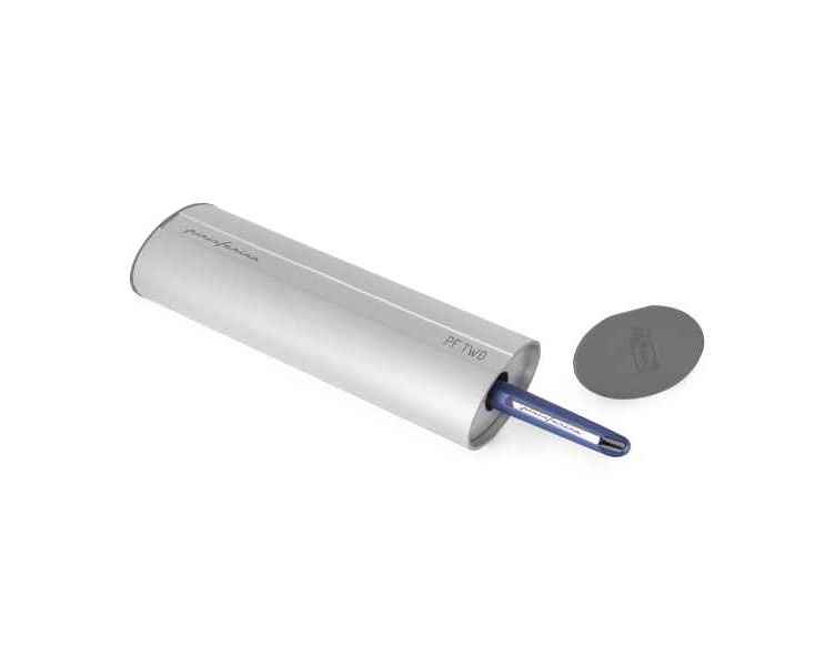 Перьевая ручка PF Two от дизайнеров Pininfarina, обладатель премии Red Dot Design Award 2021. Точные геометрические формы и уникальное техническое исполнение ручки превращают ее из пишущего инструмента в совершенный аксессуар. Скошенные линии колпачка. Элегантное сочетание синего матового корпуса и серебристого полированного клипа на колпачке ручки. Фидер (устройство подачи чернил) ручки выполнен с помощью микромеханической техники, специально откалиброван, обеспечивает длительный срок службы чернил и защищает при перепадах атмосферного давления и температуры. Перо стальное, тонкое F. Длина ручки 15 см, вес 45 гр. Упакована в серебристую округлую подарочную коробку.