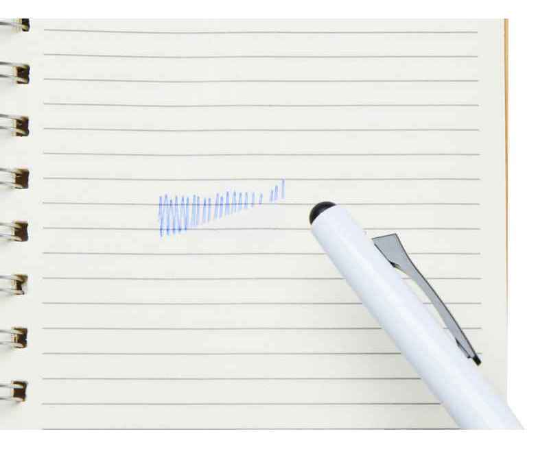 Пластиковая шариковая ручка со стирающимися чернилами. Синие чернила стираются с помощью ластика в верхней части ручки.
