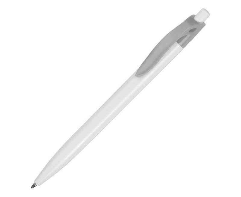 Стильная пластиковая ручка с ярким цветным клипом и белым корпусом отлично подойдет для нанесения логотипов и рекламной информации. Нажимной механизм.