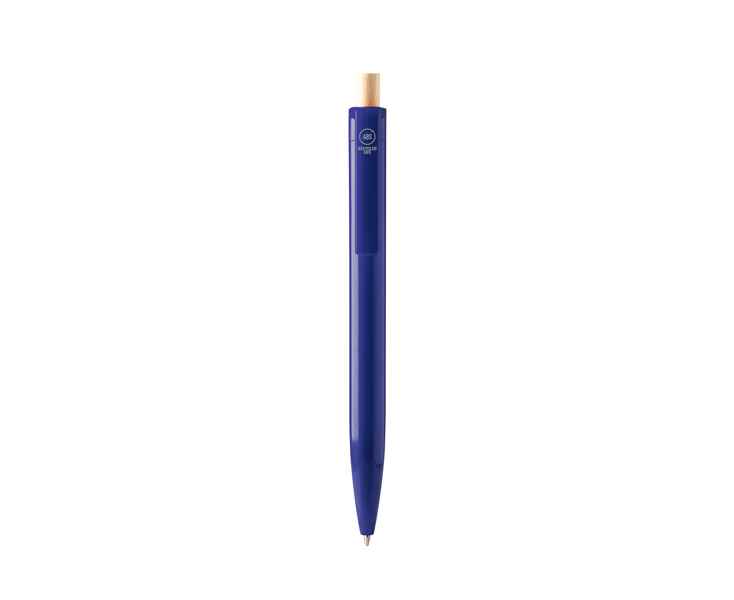 Шариковая ручка из переработанного ABS пластика с бамбуковой кнопкой. Джамбо-заправка синими чернилами.