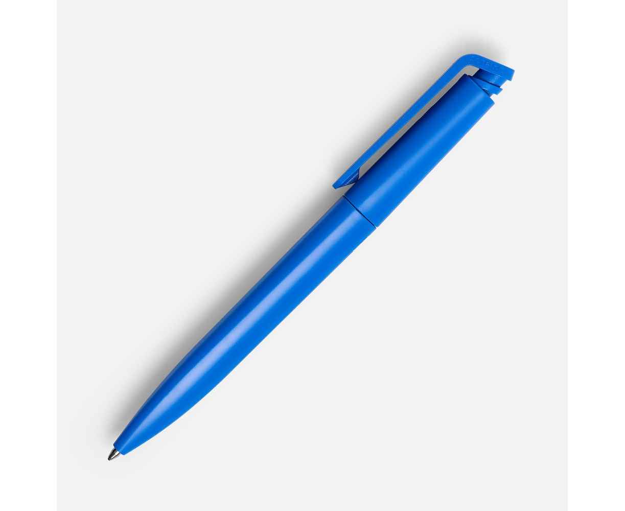 Шариковая ручка с эргономичным треугольным корпусом из матового пластика.