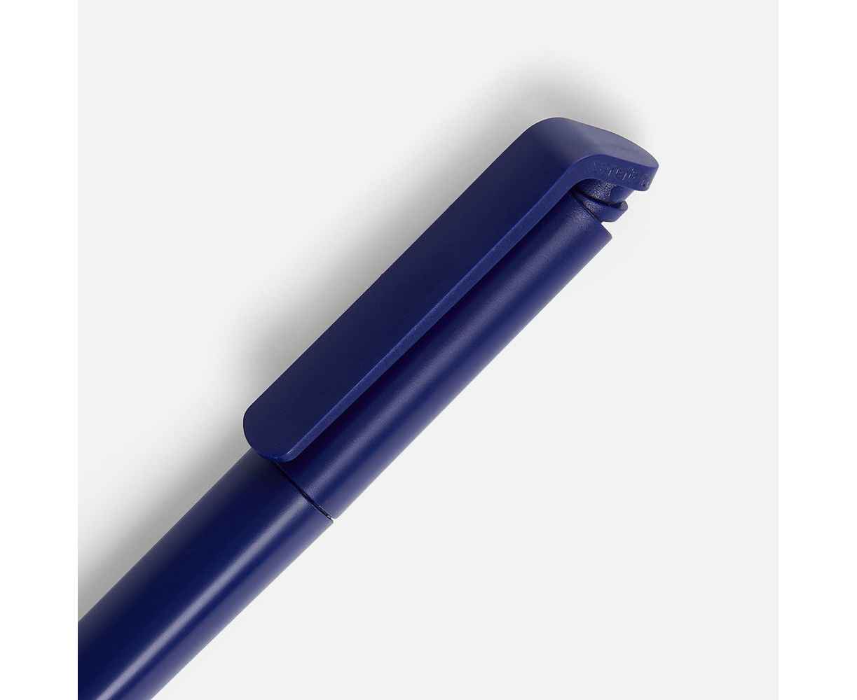 Шариковая ручка с эргономичным треугольным корпусом из матового пластика.