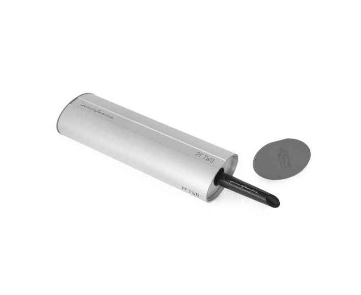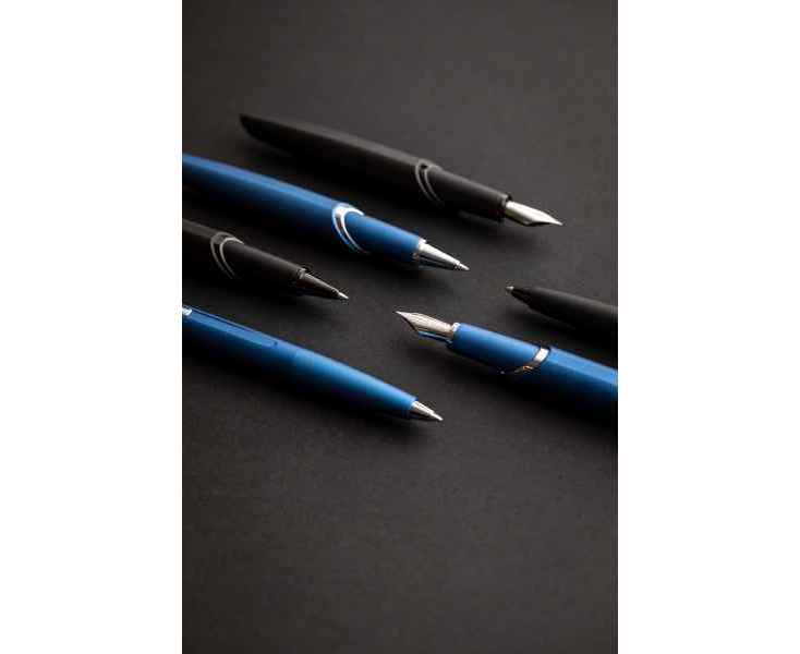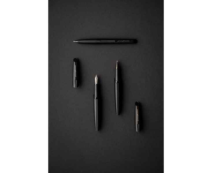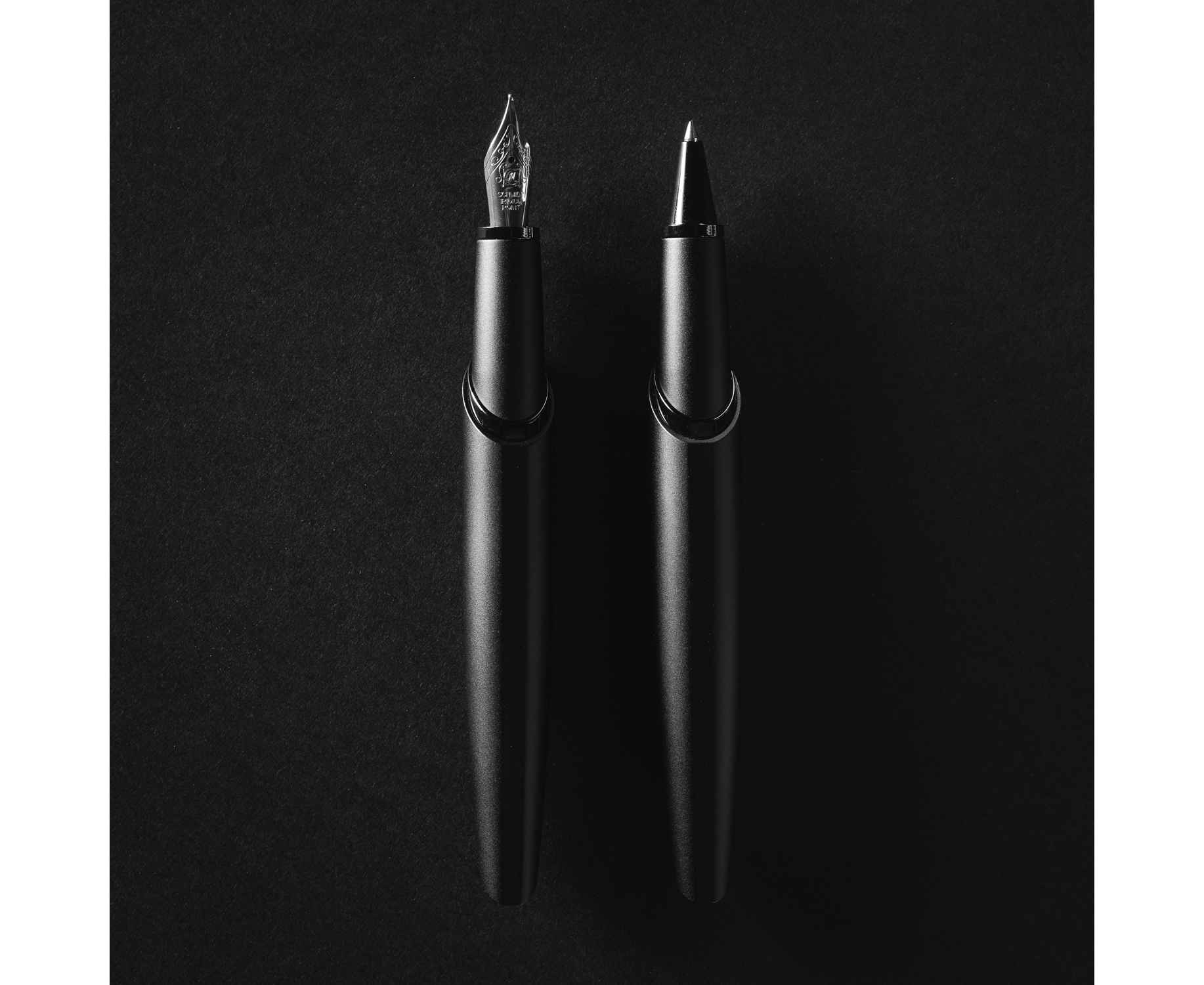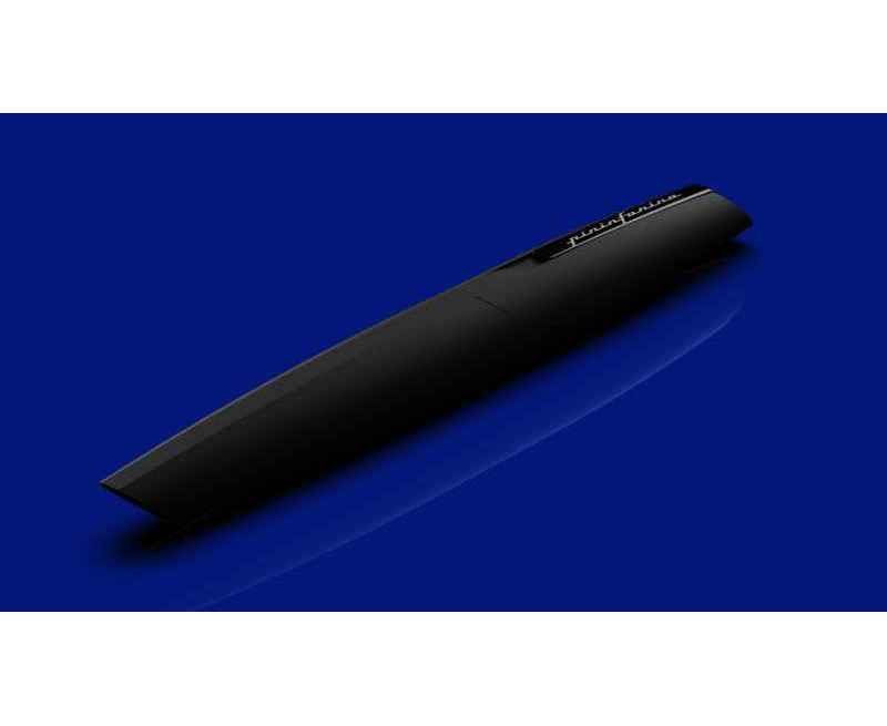 Роллер из коллекции 2021 года PF Two от дизайнеров Pininfarina. Точные геометрические формы и уникальное техническое исполнение ручки превращают ее из пишущего инструмента в совершенный аксессуар. Скошенные линии колпачка. Элегантное сочетание черного матового корпуса и глянцевого клипа на колпачке ручки. Корпус ручки выполнен из алюминия, ее длина 15 см, вес 40 гр. Упакована в серебристую округлую подарочную коробку. В ручке используется чернильный стержень Schmidt SRC 5888 с синей пастой.