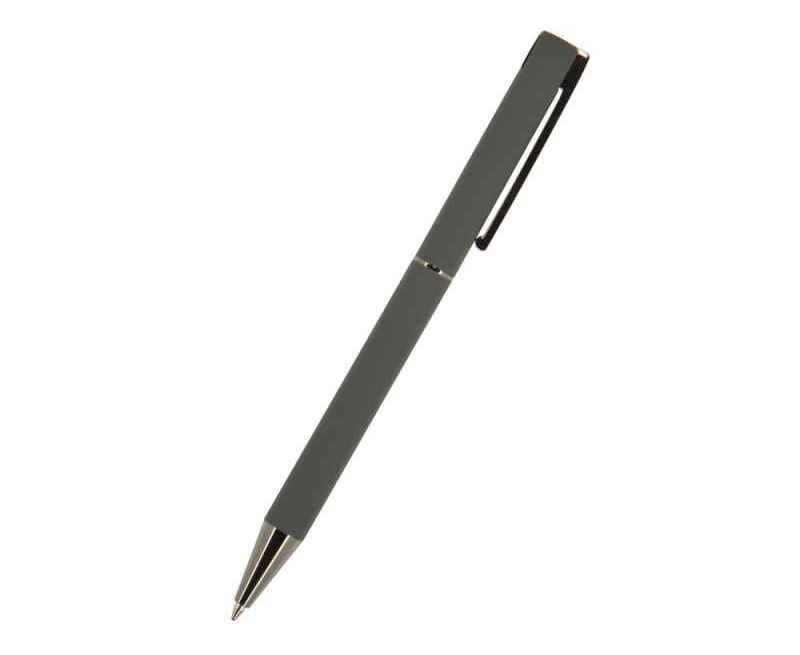 Элегантная ручка в сером корпусе. Автоматическая ручка с поворотным механизмом. Матовое нескользящее покрытие ручки. Толстый кончик стержня обеспечивает легкость письма и аккуратность почерка.