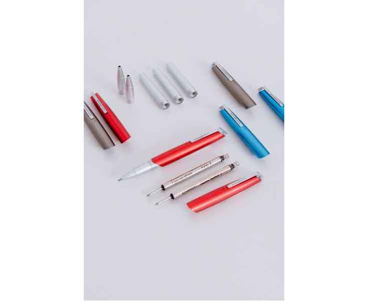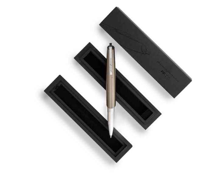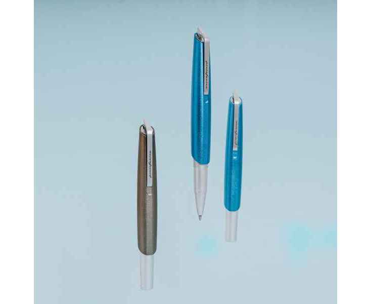 Роллер из коллекции 2023 года PF Go от дизайнеров Pininfarina. Дизайн и простота использования - вот те составляющие, которые вдохновили Pininfarina на создание коллекции GO. Сочетание титанового завинчивающегося колпачка и корпуса серебристого цвета. Корпус ручки выполнен из алюминия, ее длина 12 см, диаметр 1 см, вес 29 гр. Оригинальный дизайн клипа. Упакована в черную коробку из дизайнерского многослойного картона 15х3,5х2 см. В ручке используется чернильный стержень Schmidt P8127 с синей пастой. Сделана в Италии.
