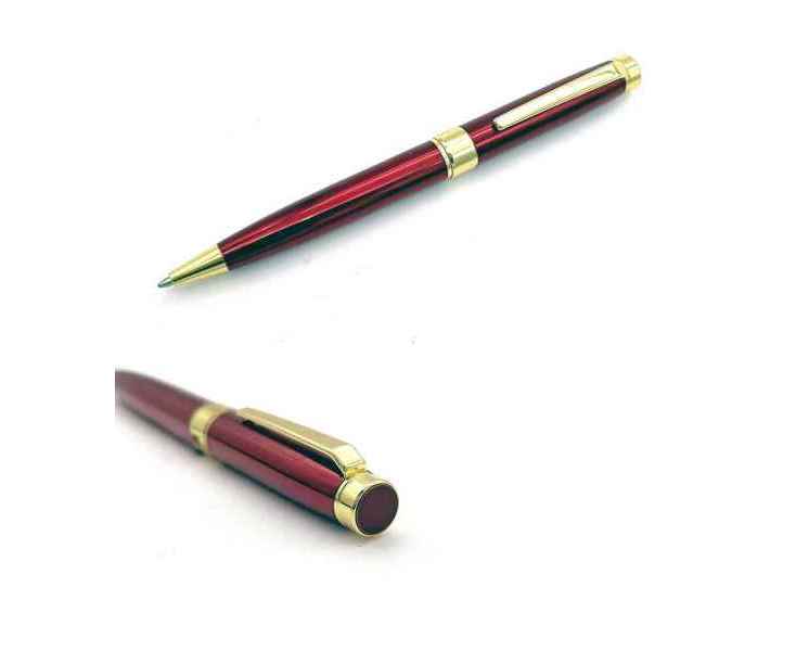 Металлическая шариковая ручка представительского класса с поворотным механизмом. Лаковый глянцевый  корпус и детали отделки. Корпус ручки разбирается, стержень легко заменить. Стержень с синими чернилами типа Parker. Длина письма 1000 метров. Вес ручки 32 грамма. Толщина письма 1 мм. Логотип нанесенный методом гравировки будет иметь золотистую поверхность.