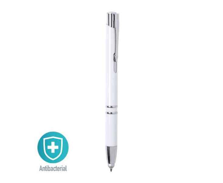 Шариковая ручка со стилусом TOPEN, белый, антибактериальный пластик