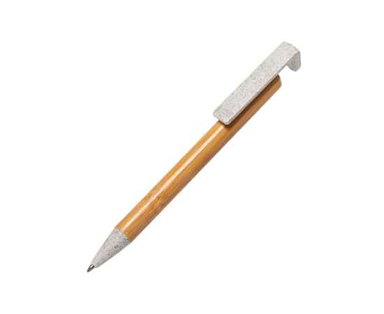 Ручка шариковая с подставкой для смартфона CLARION, бамбук, пластик с пшеничным волокном