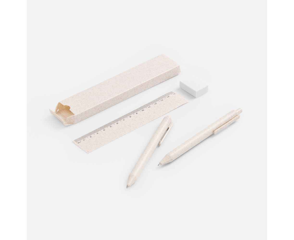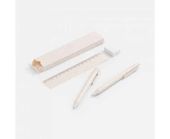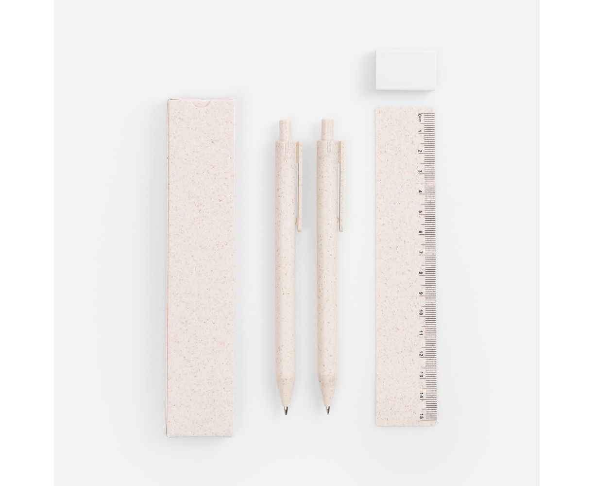 - В комплекте ручка, механический карандаш, линейка, ластик и упаковка.