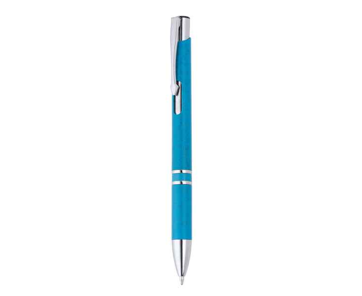 Кнопочная ручка из пшеничного волокна и АБС с серебряными деталями. Джамбо-заправка синими чернилами. Пшеничное волокно и ABS.