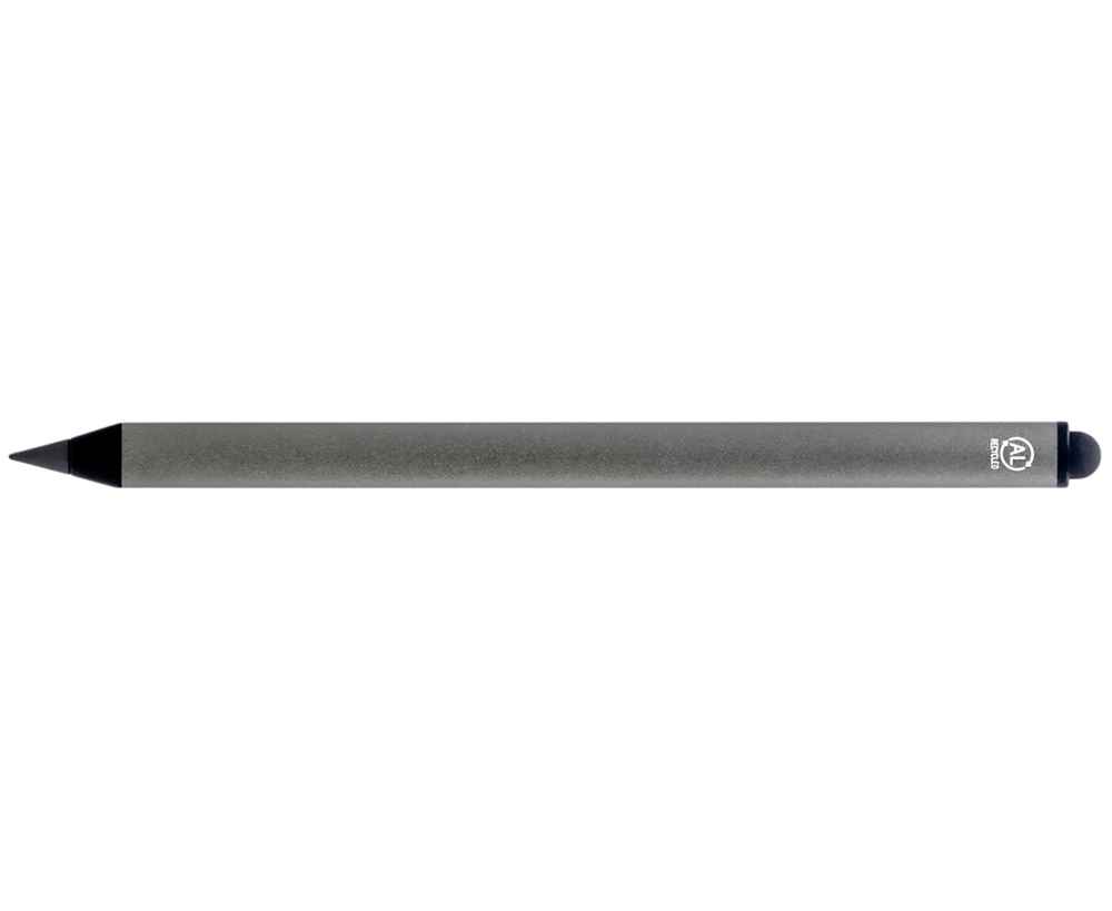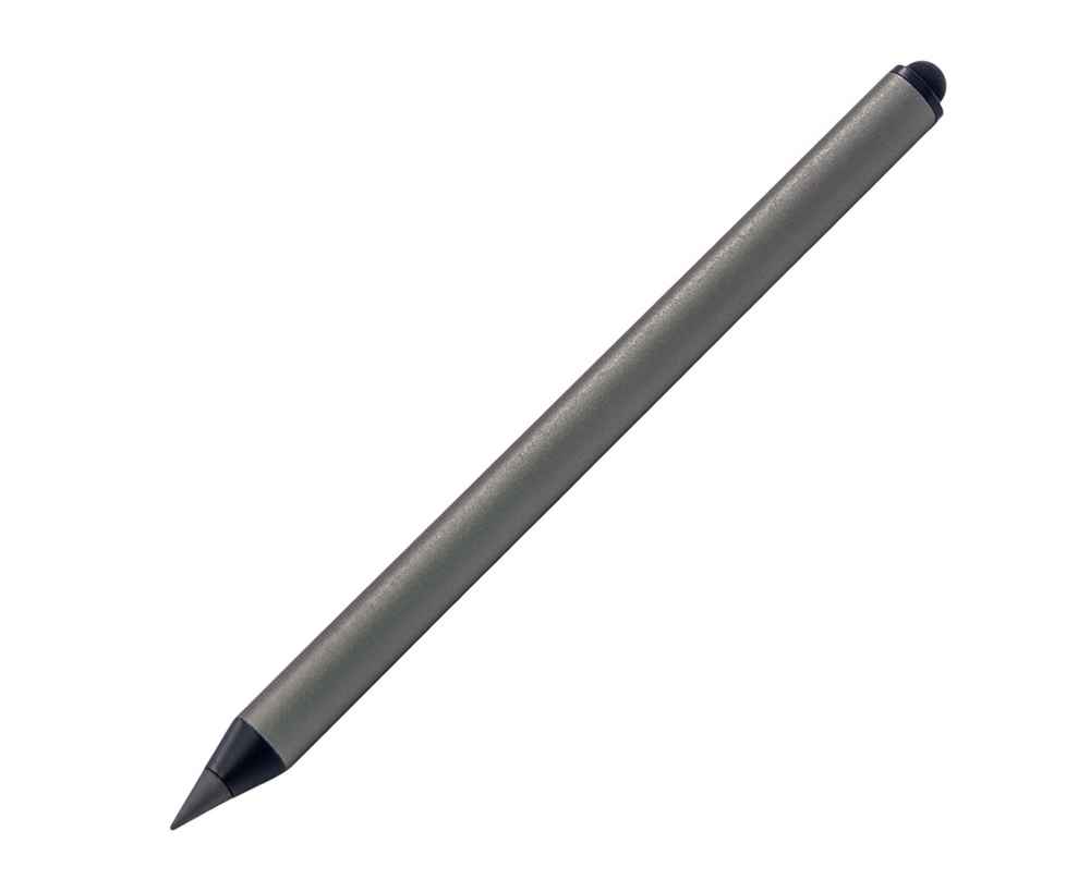 Карандаш изготовлен из переработанного алюминия. В отличие от обычных карандашей его не нужно точить, и он не пачкает руки.