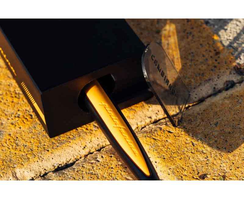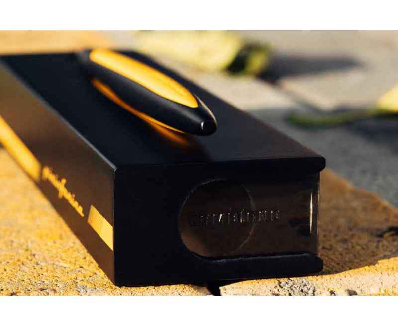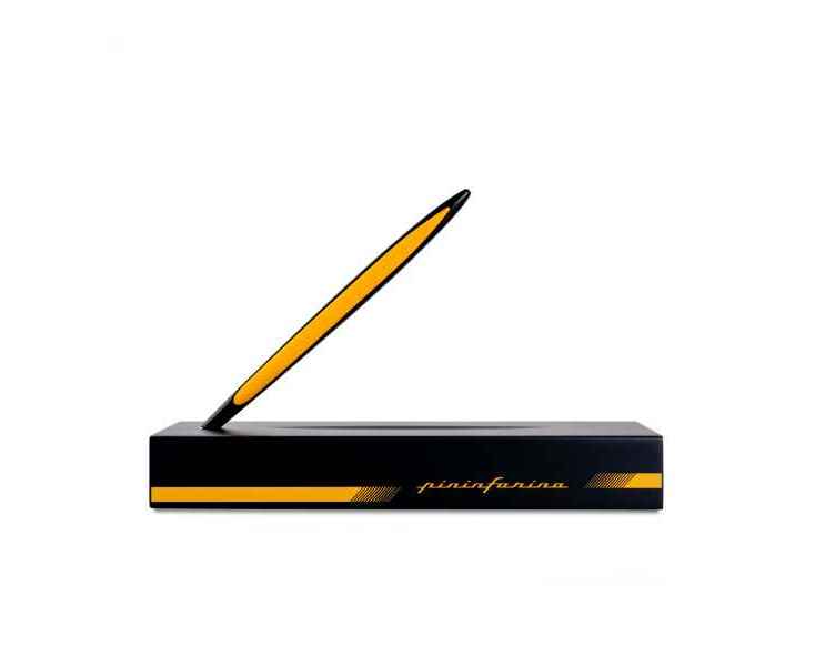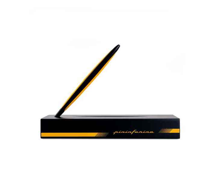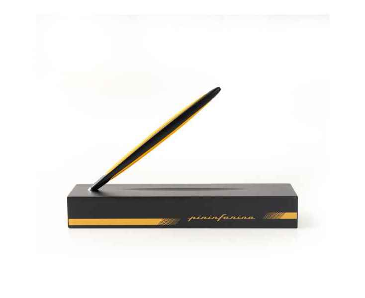 Флагманская ручка модели Cambiano Race Yellow дизайнерского дома Pininfarina сочетает в себе различные материалы, технологичность, элегантные линии и смелые дизайнерские решения. Она предназначена для тех, кто любит спортивный дизайн и стремится к уникальному опыту письма. Алюминиевый корпус ручки окрашен в черный цвет, а желтые эргономичные резиновые вставки мгновенно вызывают ассоциации с миром автоспорта и служат для оптимального захвата. Изысканная подставка из черного дерева, служащая одновременно коробкой для ручки, вручную покрыта черным лаком и позволяет превратить этот набор в уникальный арт-объект на вашем столе. Этот набор полностью изготовлен вручную, идеально воплощает итальянское мастерство, дух гонок и является символом высшего качества и эксклюзивности. В ручке используется шариковый стержень CROSS® 8513 M с синей пастой. Вес ручки 39 гр, длина 16 см.