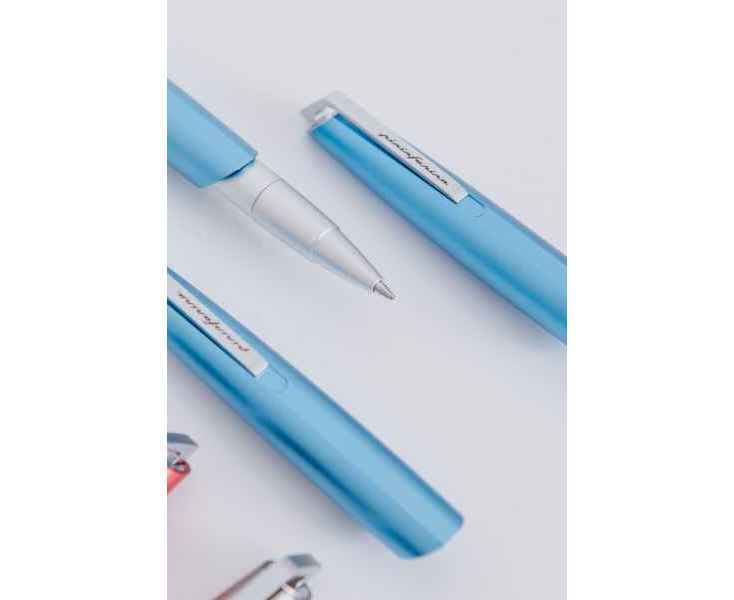 Шариковая ручка из коллекции 2023 года PF Go от дизайнеров Pininfarina. Дизайн и простота использования - вот те составляющие, которые вдохновили Pininfarina на создание коллекции GO. Сочетание ярко-синей верхней части корпуса и нижней части серебристого цвета с пишущим узлом. Стержень выдвигается при помощи идеально отлаженного поворотного механизма. Корпус ручки выполнен из алюминия, ее длина 12 см, диаметр 1 см, вес 24 гр. Оригинальный дизайн клипа. Упакована в черную коробку из дизайнерского многослойного картона 15х3,5х2 см. В ручке используется шариковый стержень Schmidt D1 с синей пастой. Сделана в Италии.