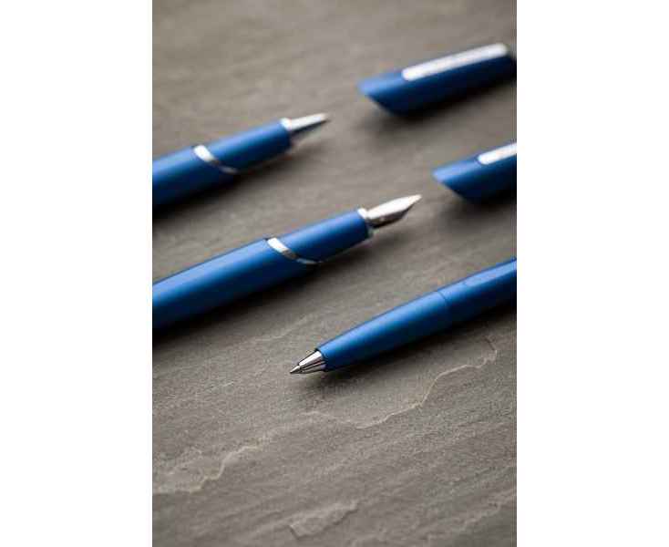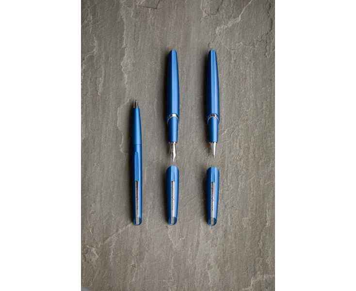 Шариковая ручка из коллекции 2021 года PF Two от дизайнеров Pininfarina. Точные геометрические формы и уникальное техническое исполнение ручки превращают ее из пишущего инструмента в совершенный аксессуар. Отличительной чертой шариковой ручки является выдвижной пишущий узел. Поворотный механизм плавно убирает не только пишущий узел, но полностью наконечник ручки внутрь корпуса. Элегантное сочетание синего матового корпуса и серебристого полированного клипа. Корпус ручки выполнен из алюминия, ее длина 14,3 см, вес 47 гр. Упакована в серебристую округлую подарочную коробку. В ручке используется шариковый стержень Schmidt P900M с синей пастой.