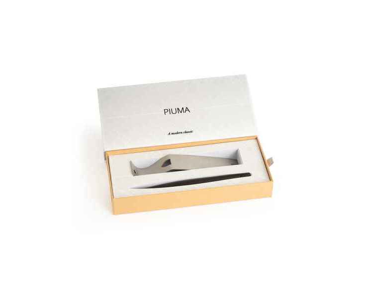 Новая ручка коллекции A modern classic модели Pininfarina PIUMA - шариковая ручка динамической формы в виде гусиного пера сделана в память Кодекса о полете птиц Леонардо да Винчи, целью которого было понять тайну полета и который хранится сейчас в Королевской библиотеке Турина. PIUMA - ручка динамической формы в виде гусиного пера, полностью сделана из дерева клена, тонированного в серо-черный угольный цвет, и весит всего 7 гр при длине 15,5 см. Piuma находится в постоянном равновесии со своим центром тяжести благодаря серому матовому стальному пьедесталу и служит артобъектом на вашем письменном столе. В ручке используется шариковый стержень Schmidt ® S635 (D1) с синей пастой. Набор упакован в белую подарочную коробку размером 215х100х30 мм.