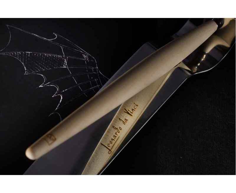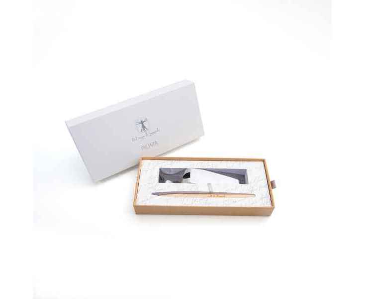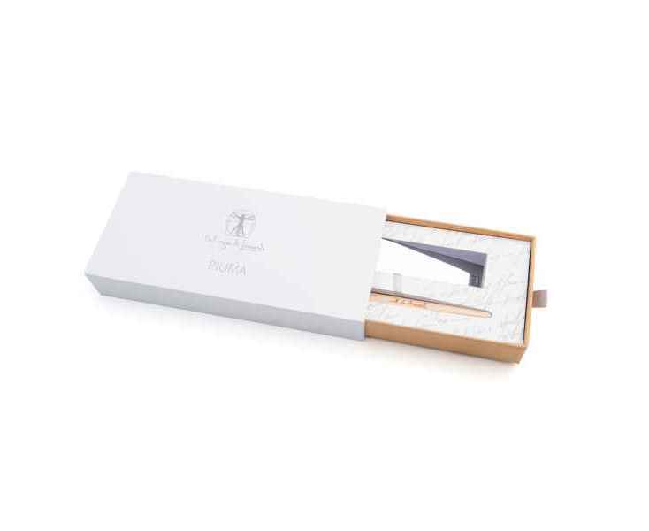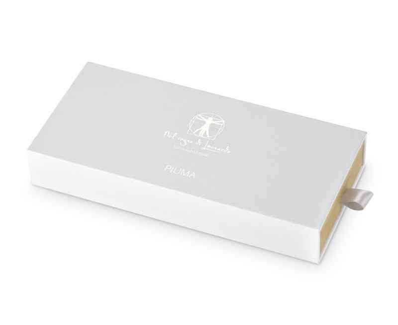 Pininfarina PIUMA - шариковая ручка динамической формы в виде гусиного пера сделана в память Кодекса о полете птиц Леонардо да Винчи, целью которого было понять тайну полета и который хранится сейчас в Королевской библиотеке Турина. Ручка полностью сделана из дерева клена. На ее корпусе выгравирован зеркальный автограф Мастера, который отражается в отполированной стальной настольной подставке для ручки. В ручке используется шариковый стержень Schmidt ® S635 (D1) с синей пастой. Набор упакован в белую подарочную коробку.