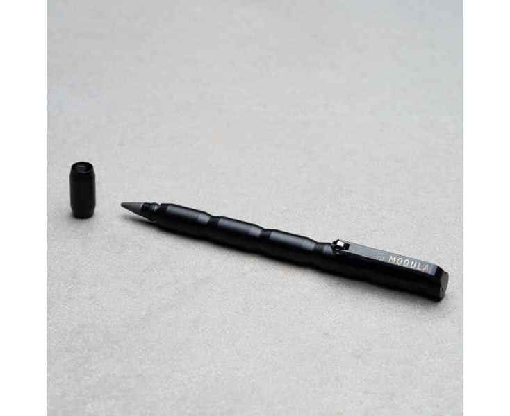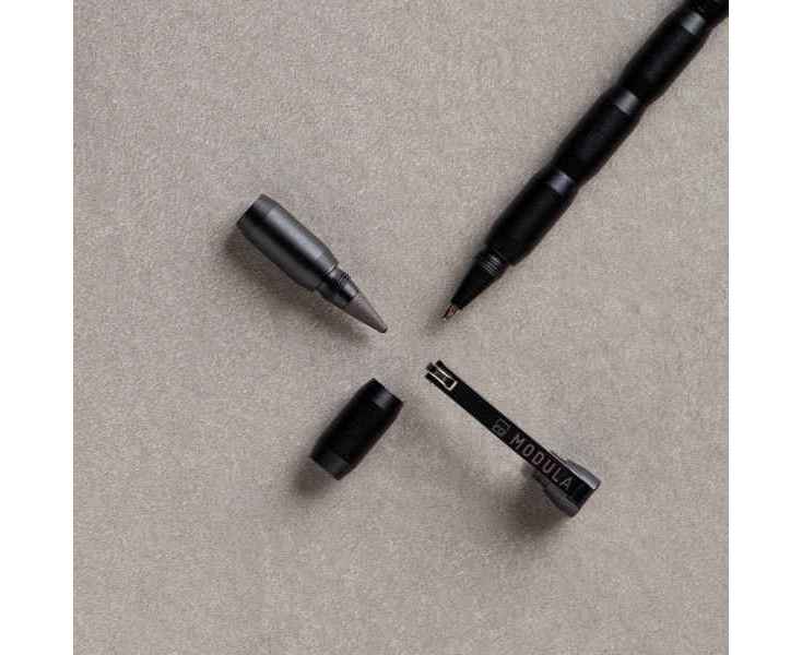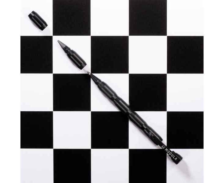 Ручка-трансформер из коллекции Pininfarina Modula черного цвета создана Pininfarina в сотрудничестве с итальянским дизайнером Луиджи Тренти. Получился совершенно необычный пишущий инструмент, сочетающий в себе шариковую ручку и карандаш. Корпус сделан из алюминия и имеет два независимых пишущих узла: шариковую ручку и карандаш со сменным наконечником из материала GrafeeX. GrafeeX - это запатентованный инновационный материал, полученный в результате спекания мелких частиц графита при высоких температурах. То есть он пишет, как обычный графитовый карандаш, но из-за высокой плотности материала крайне экономно расходуется, и его хватает очень надолго. Modula - это своеобразный конструктор, так как она может быть составлена по-разному, вплоть до укорачивания, вследствие того, что один из двух наконечников можно убрать. Оригинальный дизайн клипа. Длина ручки 15 см, диаметр 0,6 см, вес 22 гр. Упакована в черную коробку из дизайнерского многослойного картона 15х3,5х2 см. Вес в упаковке 62 гр. Сделана в Италии.