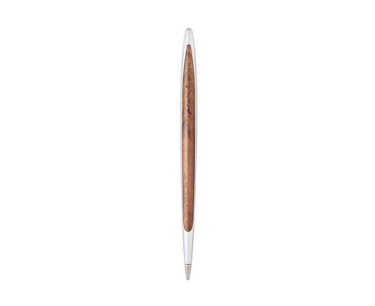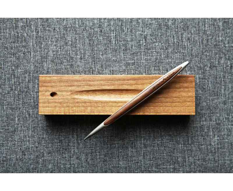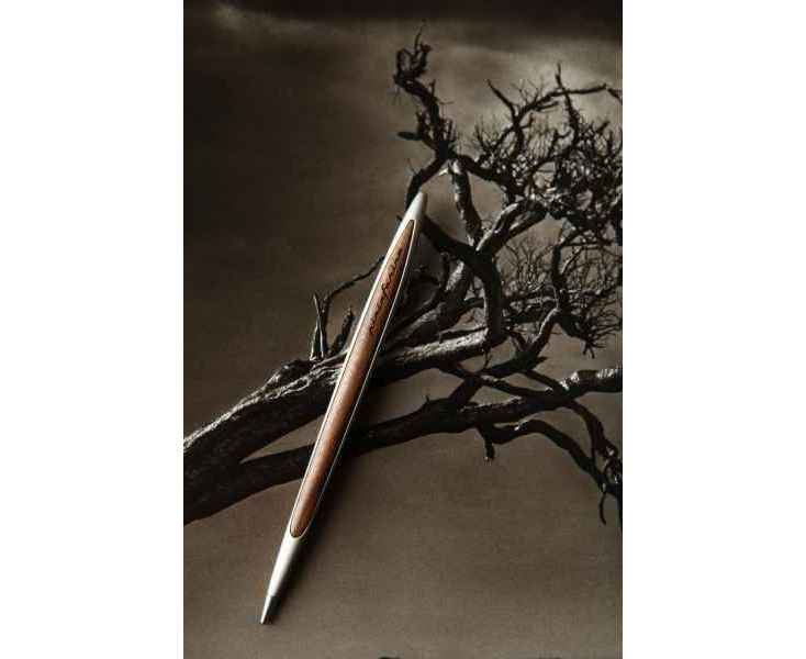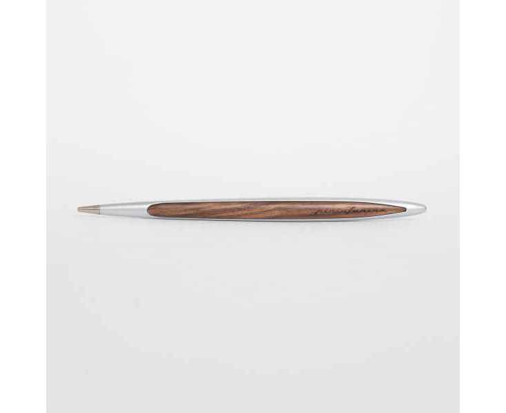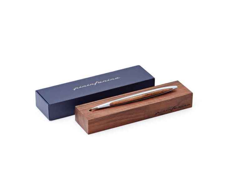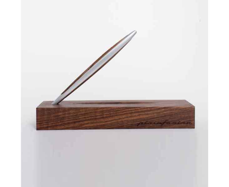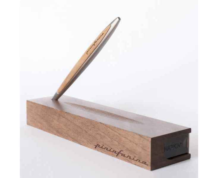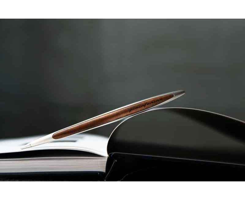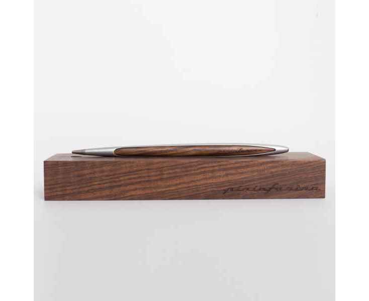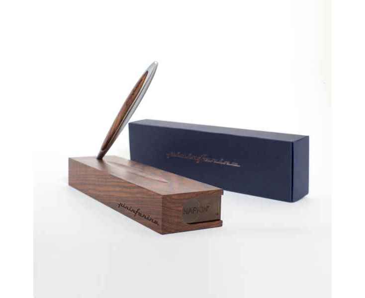 Флагманская ручка дизайнерского дома Pininfarina сочетает в себе роскошь и смелые дизайнерские решения. Pininfarina Cambiano - это объединение различных материалов, технологичность и элегантные линии. Вечная ручка имеет необычный пишущий узел в виде наконечника Ethergraf, который изготовлен из сплава металлов по запатентованной технологии. Он не содержит свинец и алюминий, производится вручную итальянскими мастерами и практически не расходуется за десятилетия использования. При соприкосновении с поверхностью бумаги, происходит химическая реакция и наконечник оставляет серебристый след, который напоминает цвет графитового карандаша, но обладает большей стойкостью. Идеально пишет на каменной бумаге. Корпус ручки выполнен из алюминия с вставками из дерева грецкого ореха. Вес ручки 39 гр, длина 16 см. Коробка выполнена из дерева грецкого ореха и одновременно является настольной подставкой для ручки.