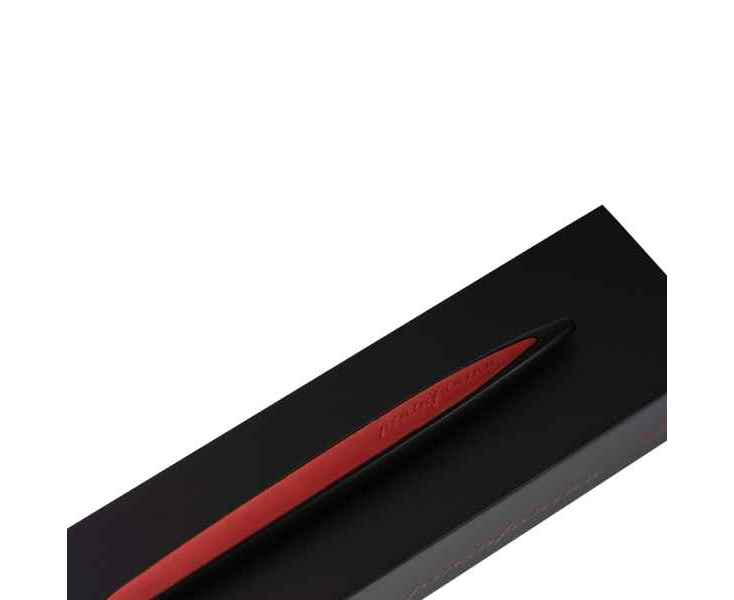 Флагманская ручка модели Cambiano Race Red дизайнерского дома Pininfarina сочетает в себе различные материалы, технологичность, элегантные линии и смелые дизайнерские решения. Она предназначена для тех, кто любит спортивный дизайн и стремится к уникальному опыту письма. Алюминиевый корпус ручки окрашен в черный цвет, а красные эргономичные резиновые вставки мгновенно вызывают ассоциации с миром автоспорта и служат для оптимального захвата. Изысканная подставка из черного дерева, служащая одновременно коробкой для ручки, вручную покрыта черным лаком и позволяет превратить этот набор в уникальный арт-объект на вашем столе. Этот набор полностью изготовлен вручную, идеально воплощает итальянское мастерство, дух гонок и является символом высшего качества и эксклюзивности. Вечная ручка имеет необычный пишущий узел в виде наконечника Ethergraf, который изготовлен из сплава металлов по запатентованной технологии. Он не содержит свинец и алюминий, производится вручную итальянскими мастерами и практически не расходуется за десятилетия использования. При соприкосновении с поверхностью бумаги, происходит химическая реакция и наконечник оставляет серебристый след, который напоминает цвет графитового карандаша, но обладает большей стойкостью. Вес ручки 39 гр, длина 16 см.