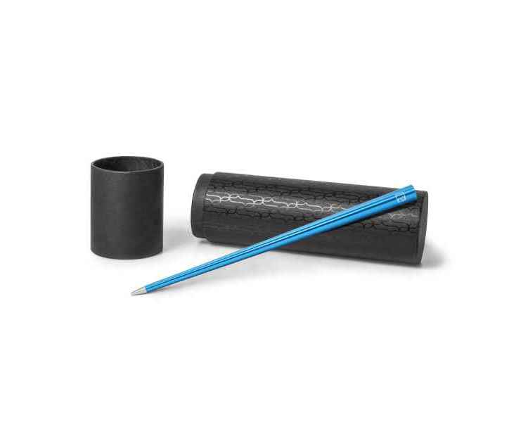 Forever Prima ELECTRIC BLUE - яркая дизайнерская ручка удлиненной конической формы, отмеченная GranDesign Etico International Award. Лазурно-синий матовый корпус из анодированного алюминия венчает наконечник Ethergraf, который изготовлен из сплава металлов по запатентованной технологии. Наконечник не содержит свинец и алюминий, производится вручную итальянскими мастерами и практически не расходуется за десятилетия использования. При соприкосновении с поверхностью бумаги, происходит химическая реакция и наконечник оставляет серебристый след, который напоминает цвет графитового карандаша, но обладает большей стойкостью. Идеально пишет на каменной бумаге. Вес ручки всего 20 гр при длине 18 см. При гравировке вскрывается белым цветом. Ручка поставляется в черном картонном тубусе диаметром 4,5 см, длиной 19 см.