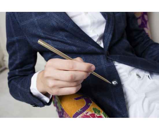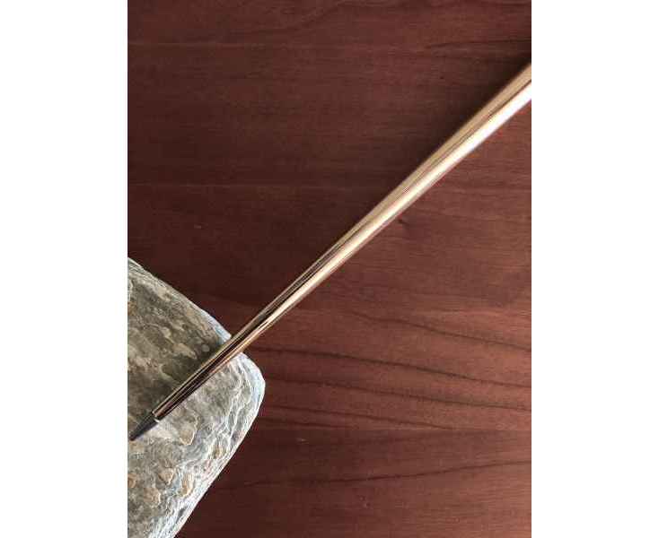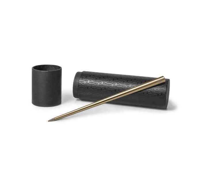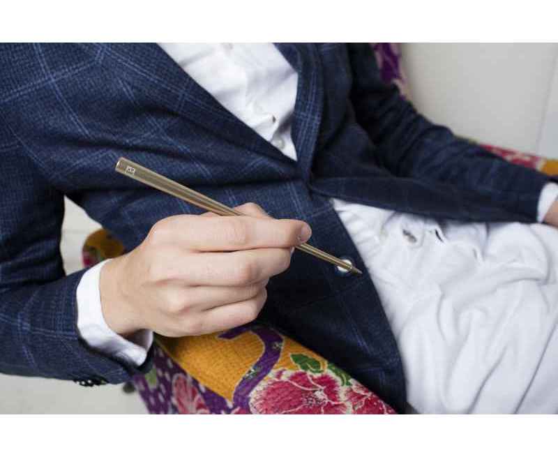 Forever Prima GOLD - яркая дизайнерская ручка удлиненной конической формы, отмеченная GranDesign Etico International Award. Золотистый корпус из анодированного алюминия венчает наконечник Ethergraf, который изготовлен из сплава металлов по запатентованной технологии. Наконечник не содержит свинец и алюминий, производится вручную итальянскими мастерами и практически не расходуется за десятилетия использования. При соприкосновении с поверхностью бумаги, происходит химическая реакция и наконечник оставляет серебристый след, который напоминает цвет графитового карандаша, но обладает большей стойкостью. Идеально пишет на каменной бумаге. Вес ручки всего 20 гр при длине 18 см. При гравировке вскрывается белым цветом. Ручка поставляется в черном картонном тубусе диаметром 4,5 см, длиной 19 см.