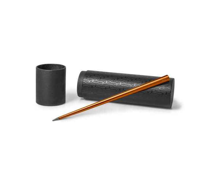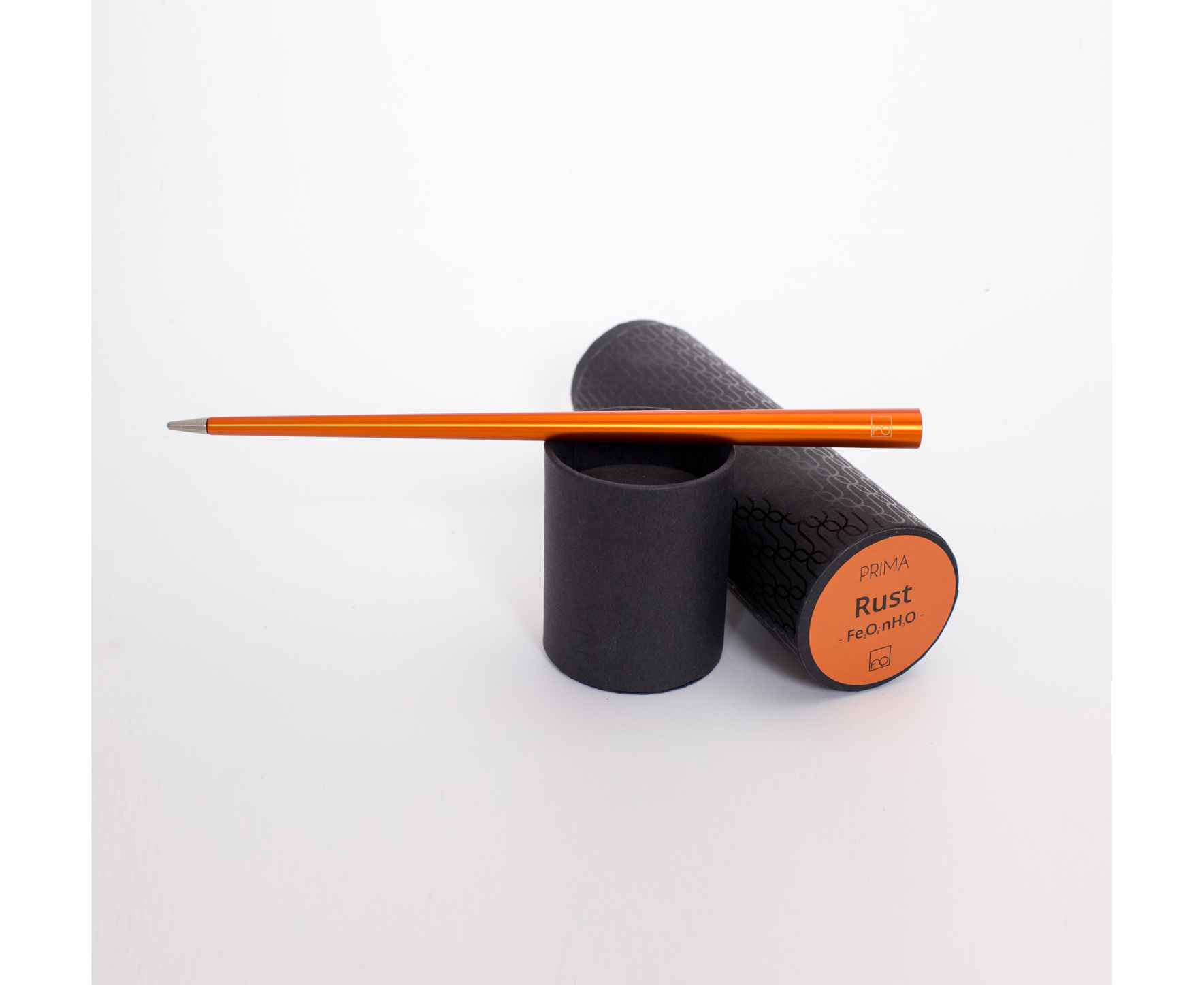 Forever Prima RUST - яркая дизайнерская ручка удлиненной конической формы, отмеченная GranDesign Etico International Award. Оранжево-рыжий матовый корпус из анодированного алюминия венчает наконечник Ethergraf, который изготовлен из сплава металлов по запатентованной технологии. Наконечник не содержит свинец и алюминий, производится вручную итальянскими мастерами и практически не расходуется за десятилетия использования. При соприкосновении с поверхностью бумаги, происходит химическая реакция и наконечник оставляет серебристый след, который напоминает цвет графитового карандаша, но обладает большей стойкостью. Идеально пишет на каменной бумаге. Вес ручки всего 20 гр при длине 18 см. При гравировке вскрывается белым цветом. Ручка поставляется в черном картонном тубусе диаметром 4,5 см, длиной 19 см.