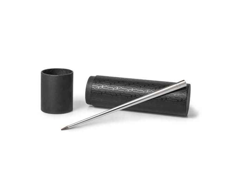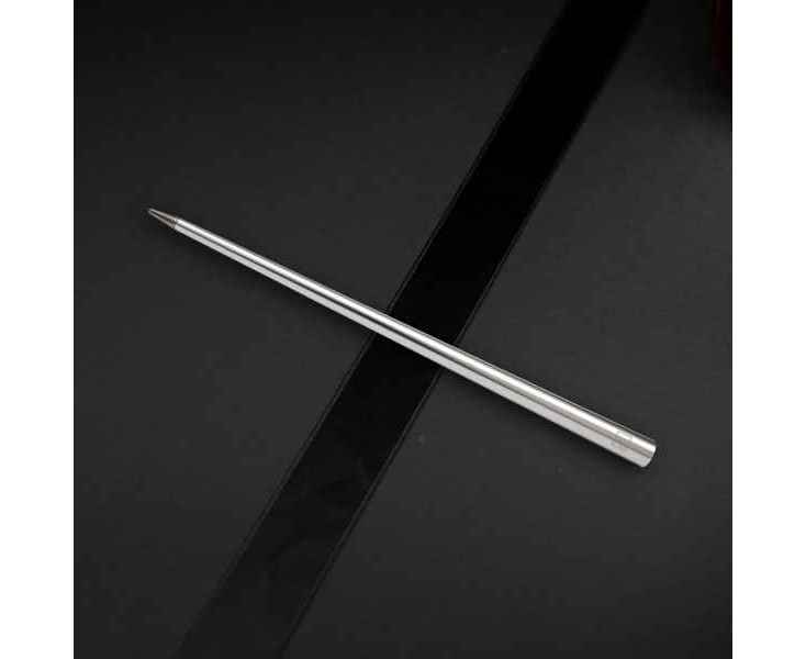 Forever Prima SILVER - яркая дизайнерская ручка удлиненной конической формы, отмеченная GranDesign Etico International Award. Серебристый корпус из анодированного алюминия венчает наконечник Ethergraf, который изготовлен из сплава металлов по запатентованной технологии. Наконечник не содержит свинец и алюминий, производится вручную итальянскими мастерами и практически не расходуется за десятилетия использования. При соприкосновении с поверхностью бумаги, происходит химическая реакция и наконечник оставляет серебристый след, который напоминает цвет графитового карандаша, но обладает большей стойкостью. Идеально пишет на каменной бумаге. Вес ручки всего 20 гр при длине 18 см. При гравировке вскрывается белым цветом. Ручка поставляется в черном картонном тубусе диаметром 4,5 см, длиной 19 см.