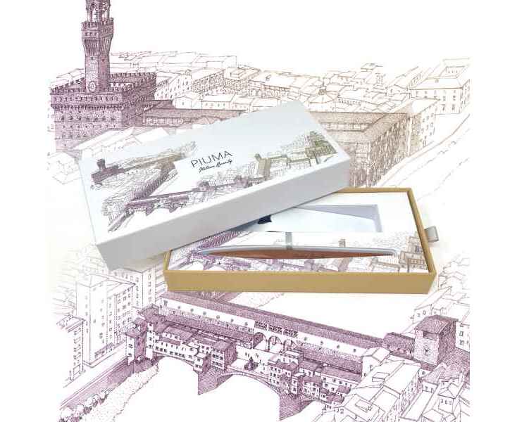 Вечная ручка Pininfarina Piuma Флоренция из лимитированной коллекции дизайнеров Pininfarina в сотрудничестве с Francesco Corni Foundation, посвященной красоте Италии и представленной 8 городами. Франческо Корни - выдающийся дизайнер из Модены, посвятивший свою жизнь популяризации истории и архитектуры. Используя трехмерное перспективное видение, он изучает наиболее значимые здания каждого города, выбирает наилучшую точку обзора, чтобы подчеркнуть их особенности, и прорисовывает детали в древней технике калиграфии. Дополняет видение мастера умелое использование цветов, по одному для каждого города. Для Флоренции дизайнер выбрал центром композиции Corridoio Vasariano, идущий от Palazzo Vecchio до Palazzo Pitti, и фиолетовый цвет, в результате подарочная коробка c ручкой Pininfarina PIUMA становится произведением искусства. PIUMA - ручка динамической формы в виде гусиного пера. Дизайнеры вдохновлялись Кодексом о полете птиц мастера Леонардо да Винчи, целью которого было понять тайну полета и который хранится сейчас в Королевской библиотеке Турина. Piuma находится в постоянном равновесии со своим центром тяжести благодаря белому стальному пьедесталу. Вечная ручка имеет необычный пишущий узел в виде наконечника Ethergraf®, изготовленного из сплава металлов по запатентованной технологии. Он не содержит свинец и алюминий, производится вручную итальянскими мастерами и практически не расходуется за десятилетия использования. При соприкосновении с поверхностью бумаги, происходит химическая реакция и наконечник оставляет серебристый след, который напоминает цвет графитового карандаша, но обладает большей стойкостью. Идеально пишет на каменной бумаге. На ручке стильный логотип Italian Beauty, она полностью сделана из дерева груши. Набор упакован в белую подарочную коробку.