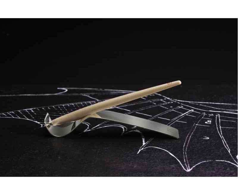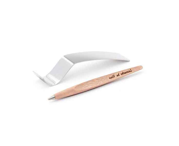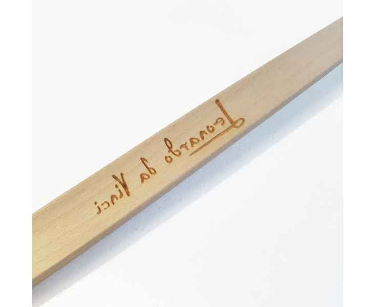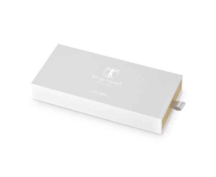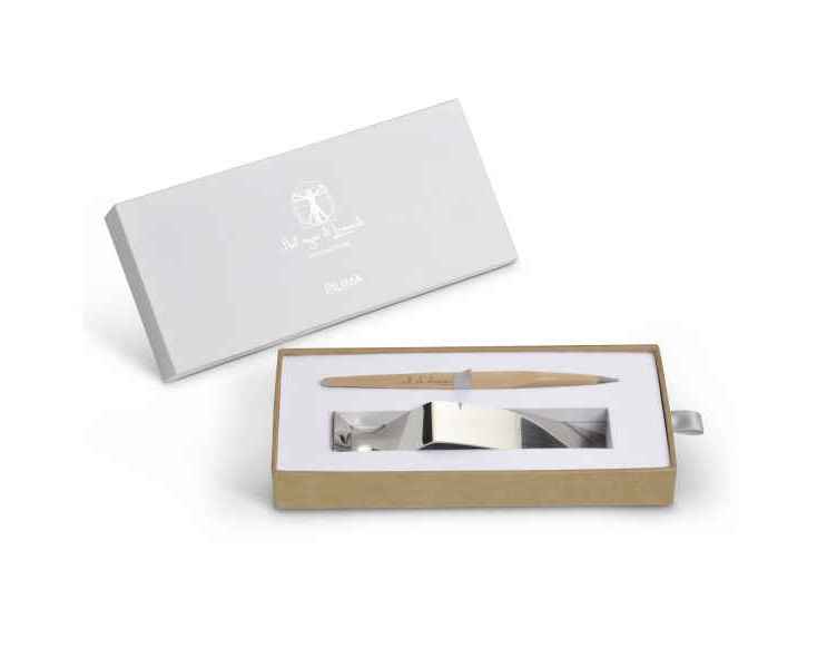 Pininfarina PIUMA - вечная ручка динамической формы в виде гусиного пера сделана в память Кодекса о полете птиц Леонардо да Винчи, целью которого было понять тайну полета и который хранится сейчас в Королевской библиотеке Турина. Ручка полностью сделана из дерева клена и весит всего 7 гр при длине 15,5 см. На ее корпусе выгравирован зеркальный автограф Мастера, который отражается в отполированной стальной настольной подставке для ручки. Вечная ручка имеет необычный пишуший узел в виде наконечника Ethergraf, который изготовлен из сплава металлов по запатентованной технологии. Он не содержит свинец и алюминий, производится вручную итальянскими мастерами и практически не расходуется за десятилетия использования. При соприкосновении с поверхностью бумаги, происходит химическая реакция и наконечник оставляет серебристый след, который напоминает цвет графитового карандаша, но обладает большей стойкостью. Идеально пишет на каменной бумаге. Набор упакован в белую подарочную коробку размером 215х100х30 мм.