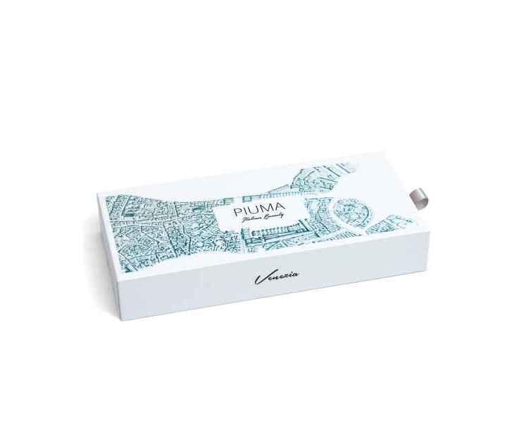 Вечная ручка Pininfarina Piuma Венеция из лимитированной коллекции дизайнеров Pininfarina в сотрудничестве с Francesco Corni Foundation, посвященной красоте Италии и представленной 8 городами. Франческо Корни - выдающийся дизайнер из Модены, посвятивший свою жизнь популяризации истории и архитектуры. Используя трехмерное перспективное видение, он изучает наиболее значимые здания каждого города, выбирает наилучшую точку обзора, чтобы подчеркнуть их особенности, и прорисовывает детали в древней технике калиграфии. Дополняет видение мастера умелое использование цветов, по одному для каждого города. Для Венеции дизайнер выбрал центром композиции вид сверху на Arsenale di Venezia и сине-зеленый морской цвет, в результате подарочная коробка c ручкой Pininfarina PIUMA становится произведением искусства. PIUMA - ручка динамической формы в виде гусиного пера. Дизайнеры вдохновлялись Кодексом о полете птиц мастера Леонардо да Винчи, целью которого было понять тайну полета и который хранится сейчас в Королевской библиотеке Турина. Piuma находится в постоянном равновесии со своим центром тяжести благодаря белому стальному пьедесталу. Вечная ручка имеет необычный пишущий узел в виде наконечника Ethergraf®, изготовленного из сплава металлов по запатентованной технологии. Он не содержит свинец и алюминий, производится вручную итальянскими мастерами и практически не расходуется за десятилетия использования. При соприкосновении с поверхностью бумаги, происходит химическая реакция и наконечник оставляет серебристый след, который напоминает цвет графитового карандаша, но обладает большей стойкостью. Идеально пишет на каменной бумаге. На ручке стильный логотип Italian Beauty, она полностью сделана из дерева груши. Набор упакован в белую подарочную коробку.