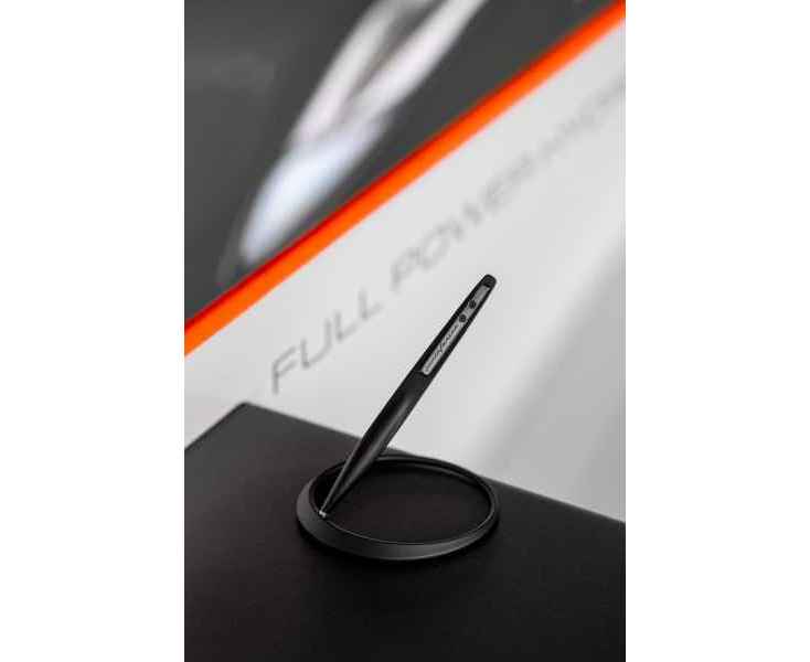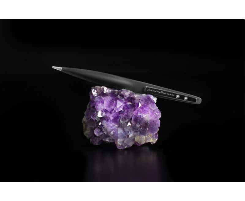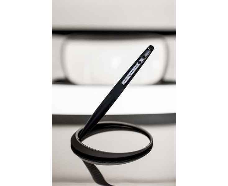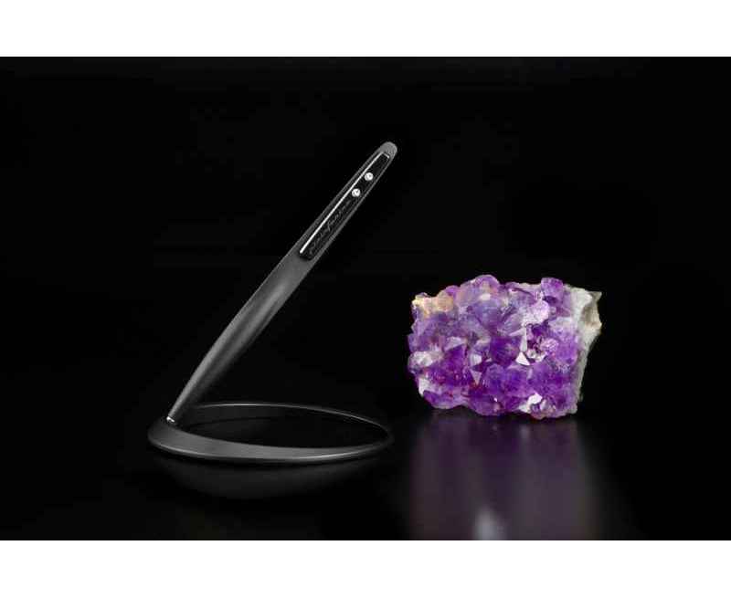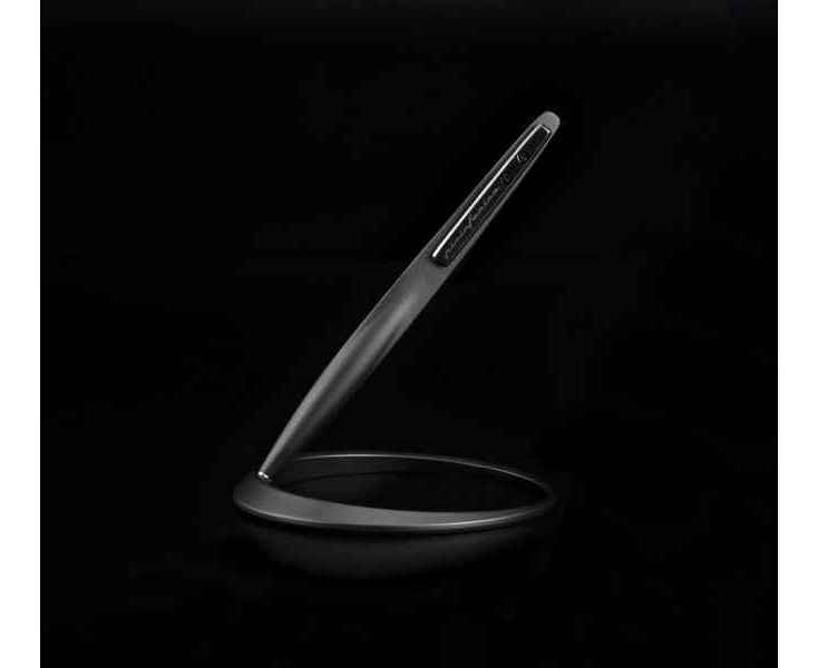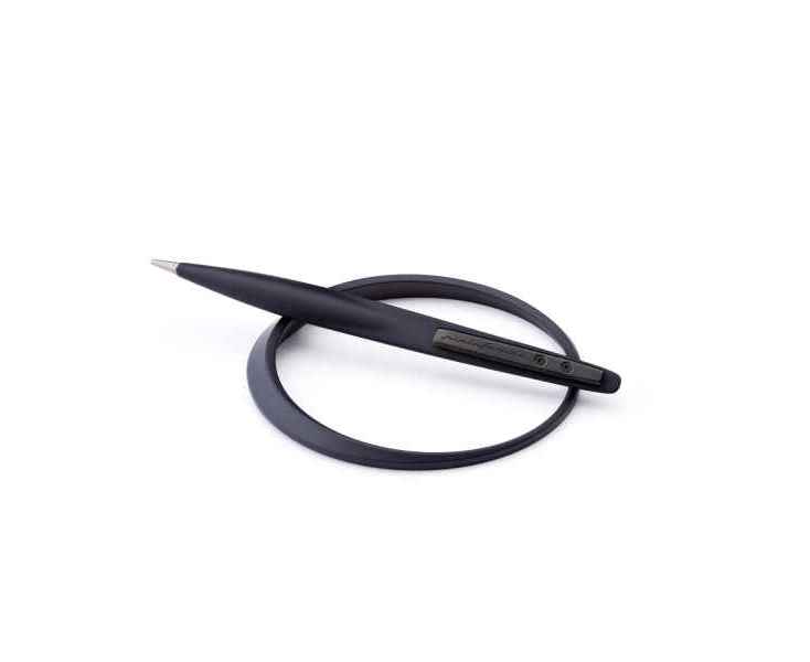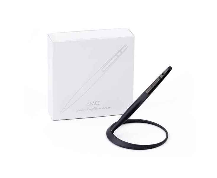 Pininfarina Space черного цвета - тонкая ультралегкая ручка из магния на алюминиевой подставке символизирующей земную орбиту. Эта изящная подставка будет необычным аксессуаром на письменном столе, служа подставкой для ручки. Вес ручки всего 15 гр при стандартной длине 15,7 см. Пишущий наконечник Ethergraf, который изготовлен из сплава металлов по запатентованной технологии. Наконечник не содержит свинец и алюминий, производится вручную итальянскими мастерами и практически не расходуется за десятилетия использования. При соприкосновении с поверхностью бумаги, происходит химическая реакция и наконечник оставляет серебристый след, который напоминает цвет графитового карандаша, но обладает большей стойкостью. Идеально пишет на каменной бумаге. Pininfarina Space - была подарена экипажу Международной космической станции во время последней миссии Vita, ручка успешно использовалась астронавтами во время полета, ведь она пишет в условиях микрогравитации в отличие от обычных ручек.
