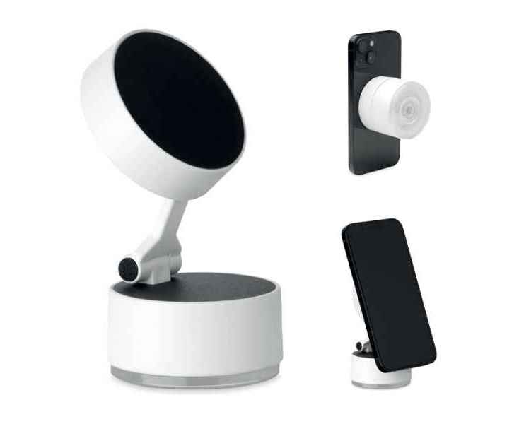 Магнитный держатель для телефона из пластика на присоске. Совместим с iPhone® 12 и новее. Включает дополнительное магнитное металлическое кольцо для зарядки других немагнитных беспроводных устройств.