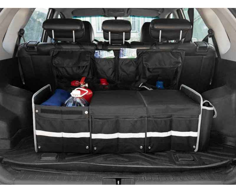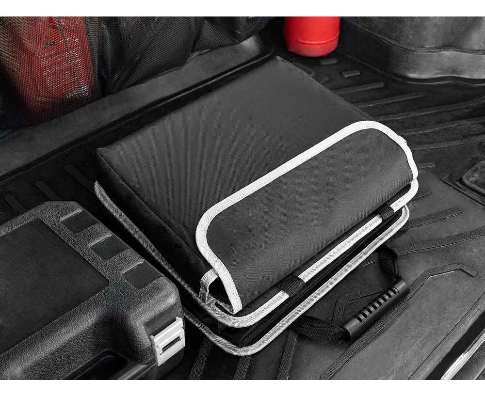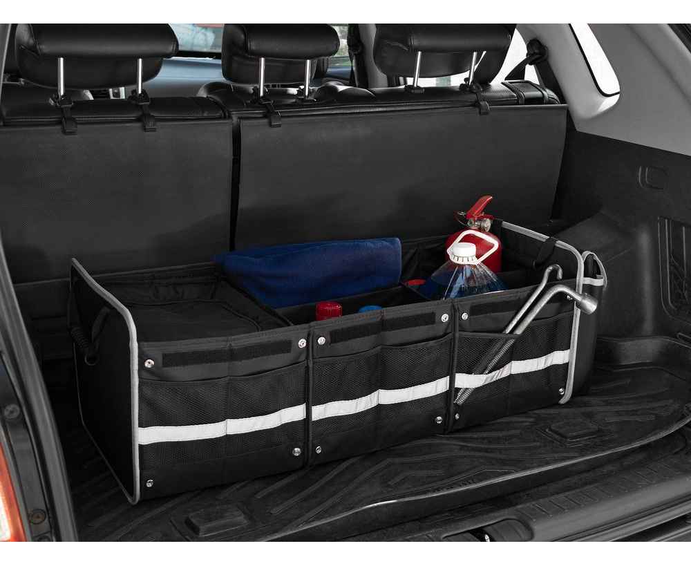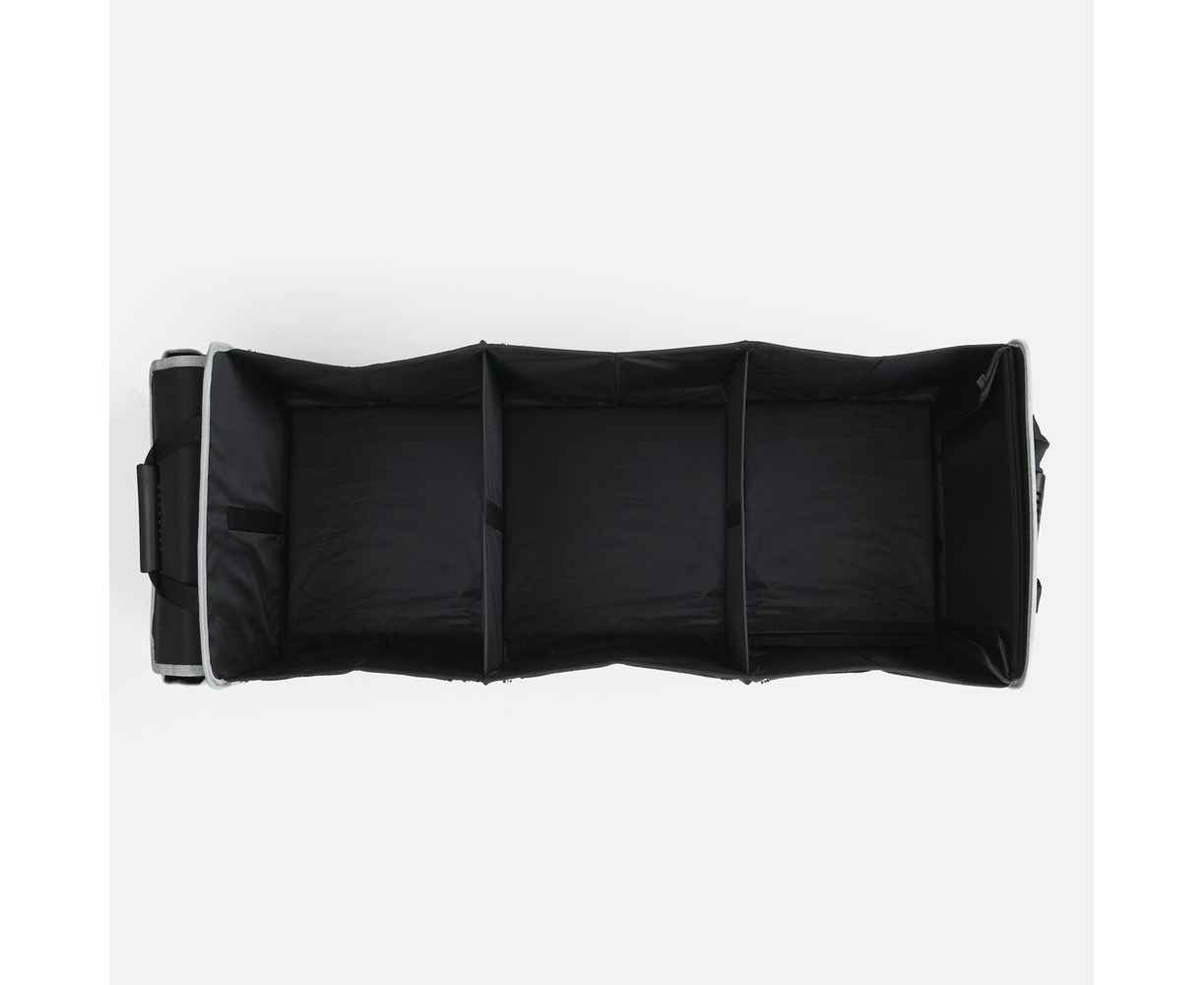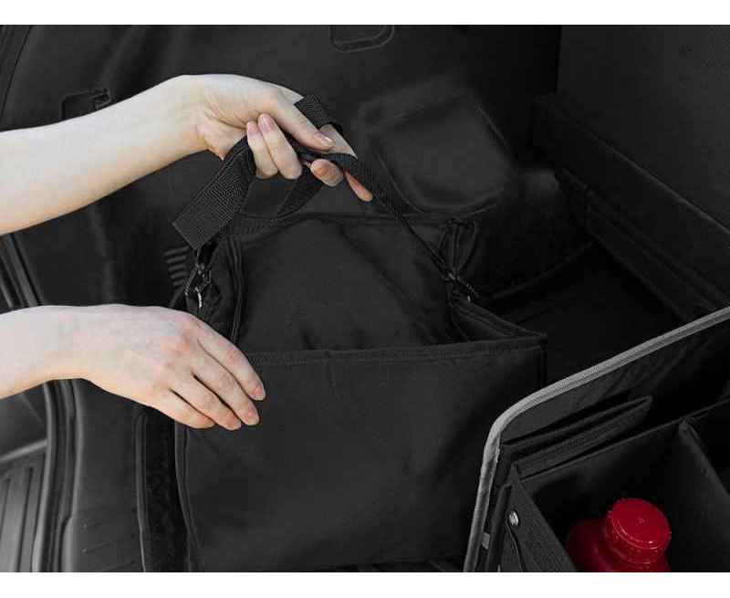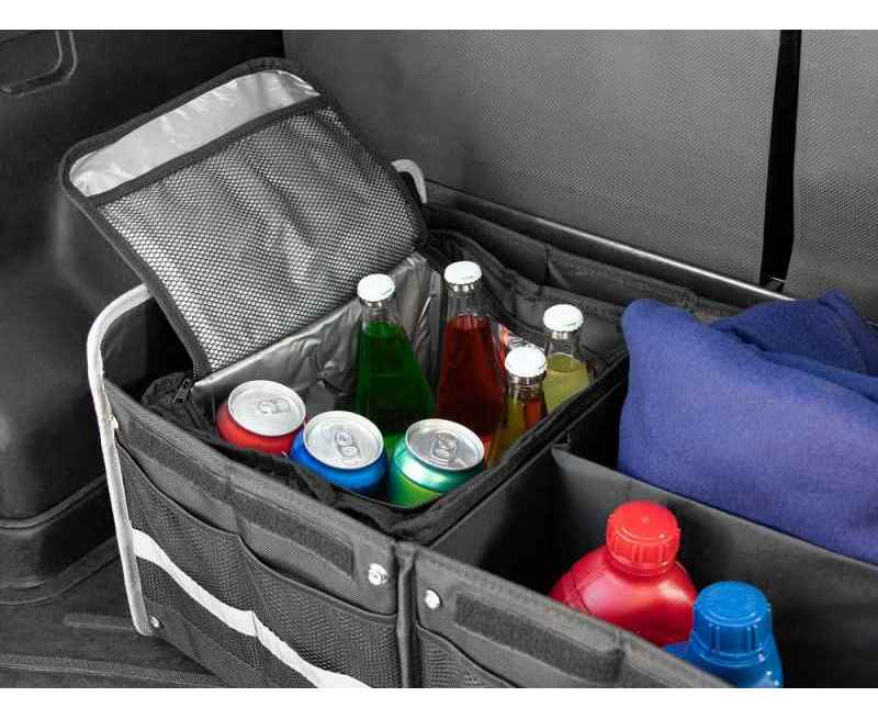 Органайзер состоит из трех основных отсеков, бокового кармана с клапаном и фронтальных карманов из сетки, что позволяет удобно хранить самые разные предметы: бутылки, сумки, инструменты, продукты и аксессуары. Также в комплект входит сумка-холодильник с водонепроницаемой подкладкой, которую можно вставить в одно из отделений, использовать отдельно, а когда она не нужна, сложить и убрать в боковой карман органайзера.