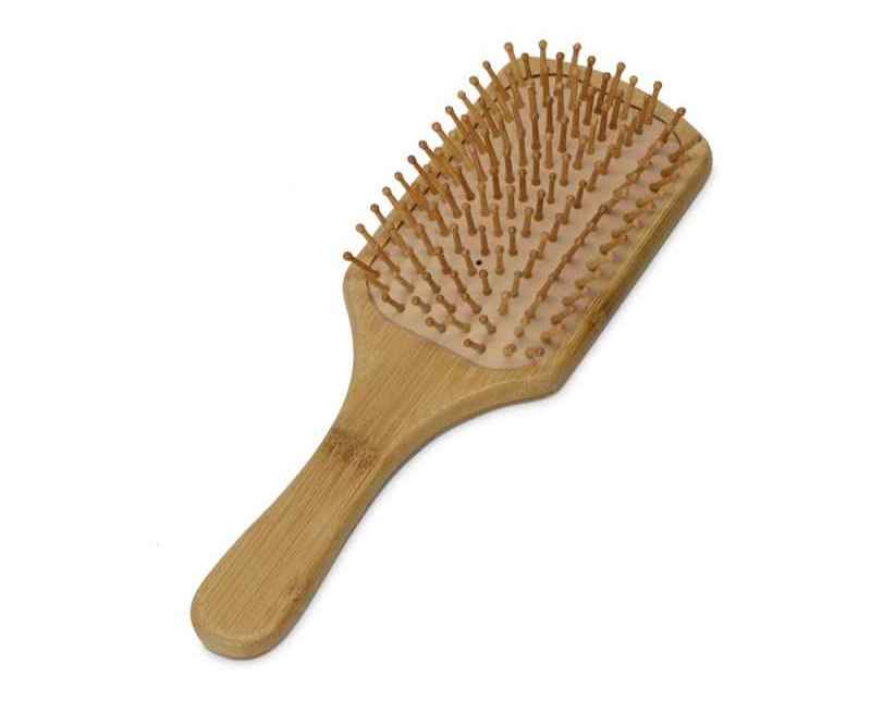 Массажная щетка для волос изготовлена из бамбука и имеет круглые и мягкие кончики, которые бережно расчесывают сухие и влажные волосы. Щетка хорошо массирует кожу головы, не травмируя ее, стимулирует кровообращение и, тем самым, улучшает рост и структуру волос.