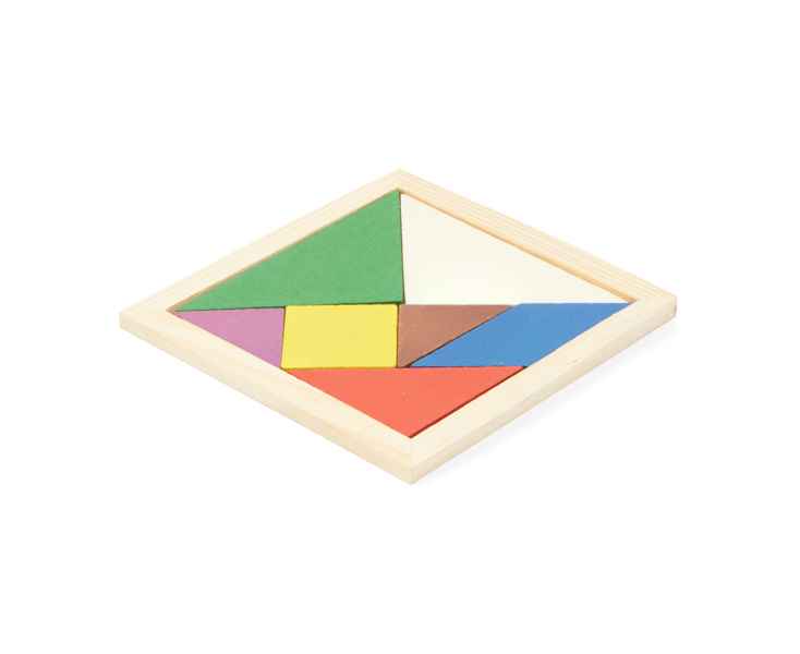Головоломка 'Танграм' из дерева с 7 цветными деталями. Идеально подходит для развития навыков.