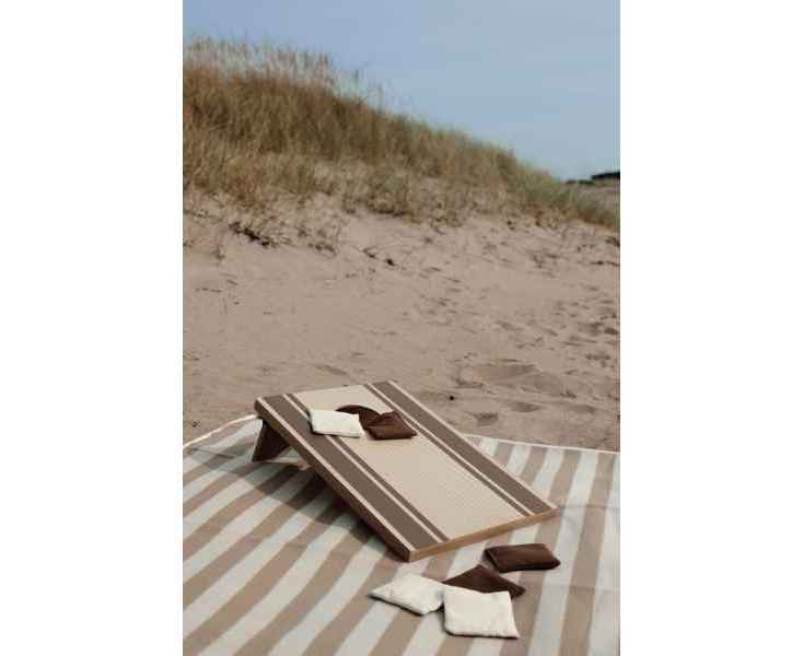 В набор входит доска, изготовленная из МДФ, сертифицированного FSC®, и шесть холщовых мешочков для бросания. Игра упакована в холщовую сумку с сетчатой задней стенкой, что позволяет легко носить ее с собой. Инструкция с правилами в комплекте.