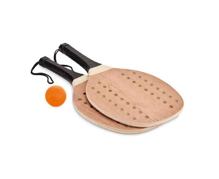 Набор для пляжного тенниса, состоящий из 2 деревянных ракеток из палисандра с полиуретановыми рукоятками и 1 мячика. Поставляется в хлопковом мешочке. FSC®-certified | FSC 100%, N5.7, FSC-C213206