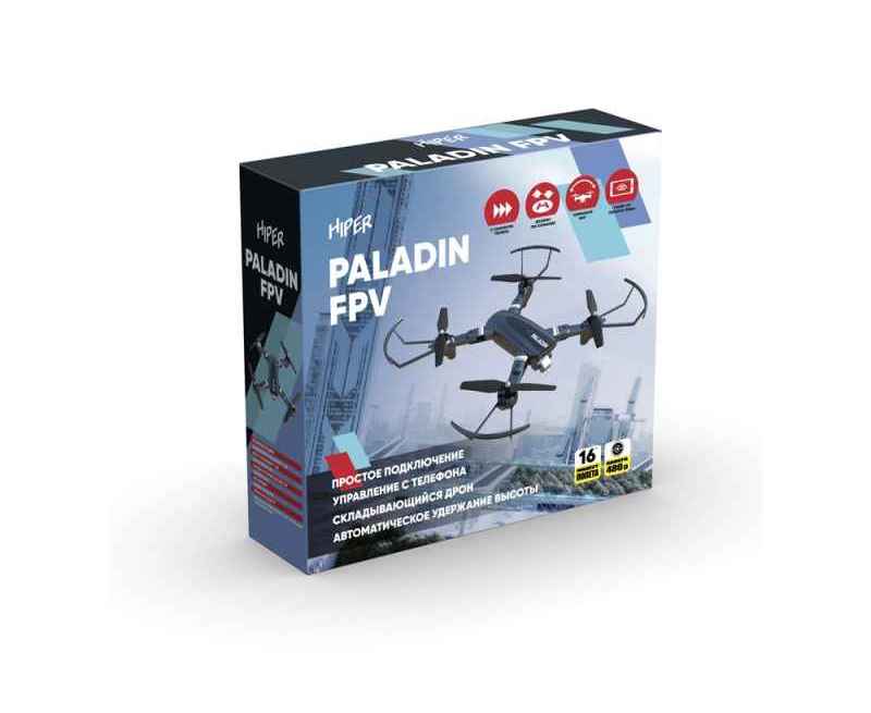 PALADIN – Это складной селфи-дрон, он подойдет новичкам для обучения и опытным пилотам для развлечения, имеет встроенную FPV видеокамеру 480P. Испытайте свободу полёта от первого лица, установив приложение KY FPV для IOS и Android (Последняя версия есть на сайте Hiper). Прямо с планшета или смартфона вы сможете управлять полётом и контролировать фото-видео съёмку. Либо просто закрепите свой смартфон в качестве экрана на пульте ДУ и наблюдайте трансляцию с камеры по WiFi.