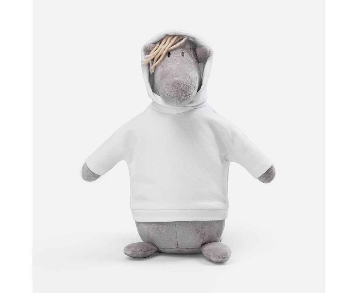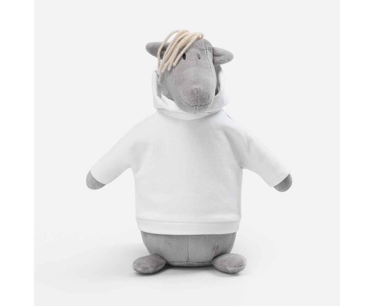 Эта игрушка просто создана для оригинальной персонализации, ведь благодаря своему чувству стиля малыш HoodieHorse обзавелся белым худи, идеальным для печати изображения или красочной надписи.