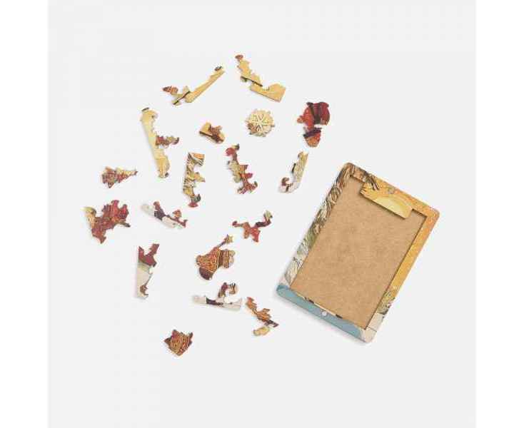 Деревянная упаковка с магнитной крышкой сохранит все элементы в целости и вызовет желание поскорее собрать пазл.
