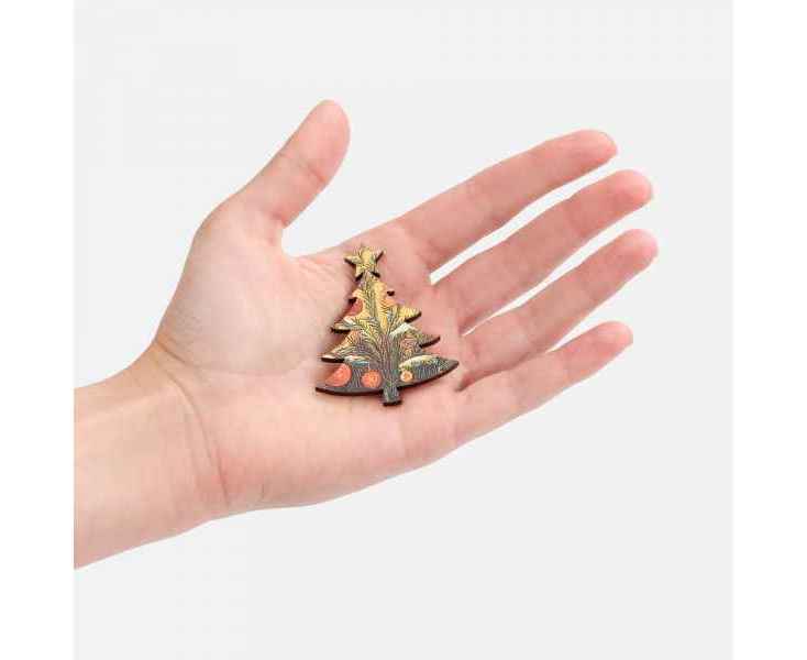 Упаковка в форме елочки сама по себе является украшением, а фигурные детали пазла — конфеты, снежинки и елочки — складываются в гармоничную атмосферную композицию. Магнитная крышка на упаковке обеспечивает надежное хранение всех элементов.