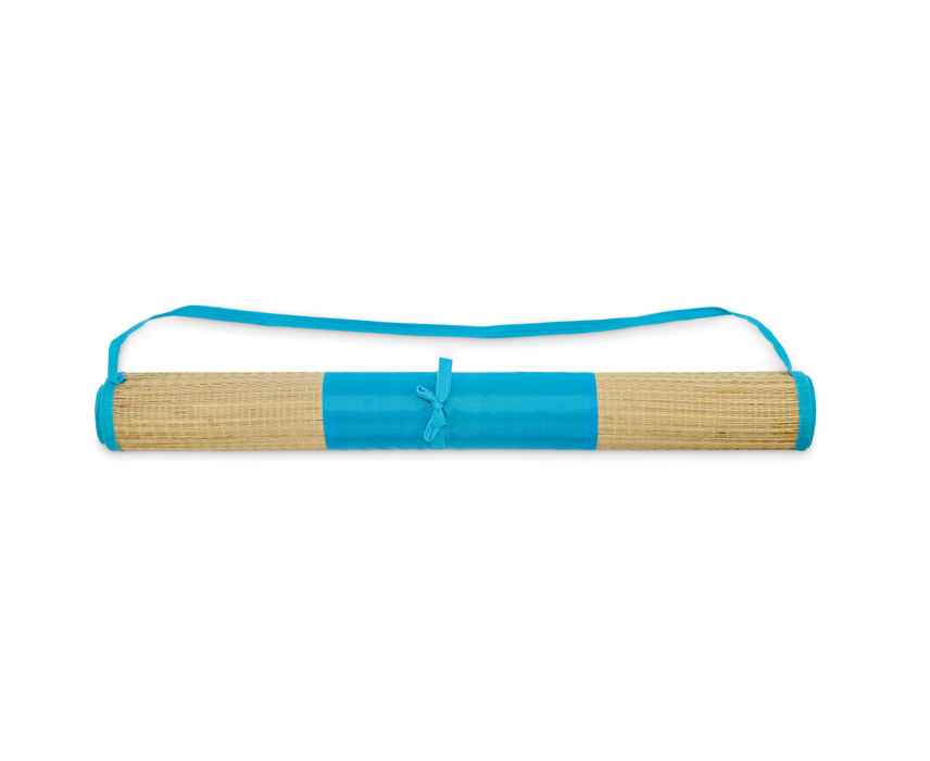 Складной пляжный коврик из натуральной соломы с ремешком для переноски из полиэстера.