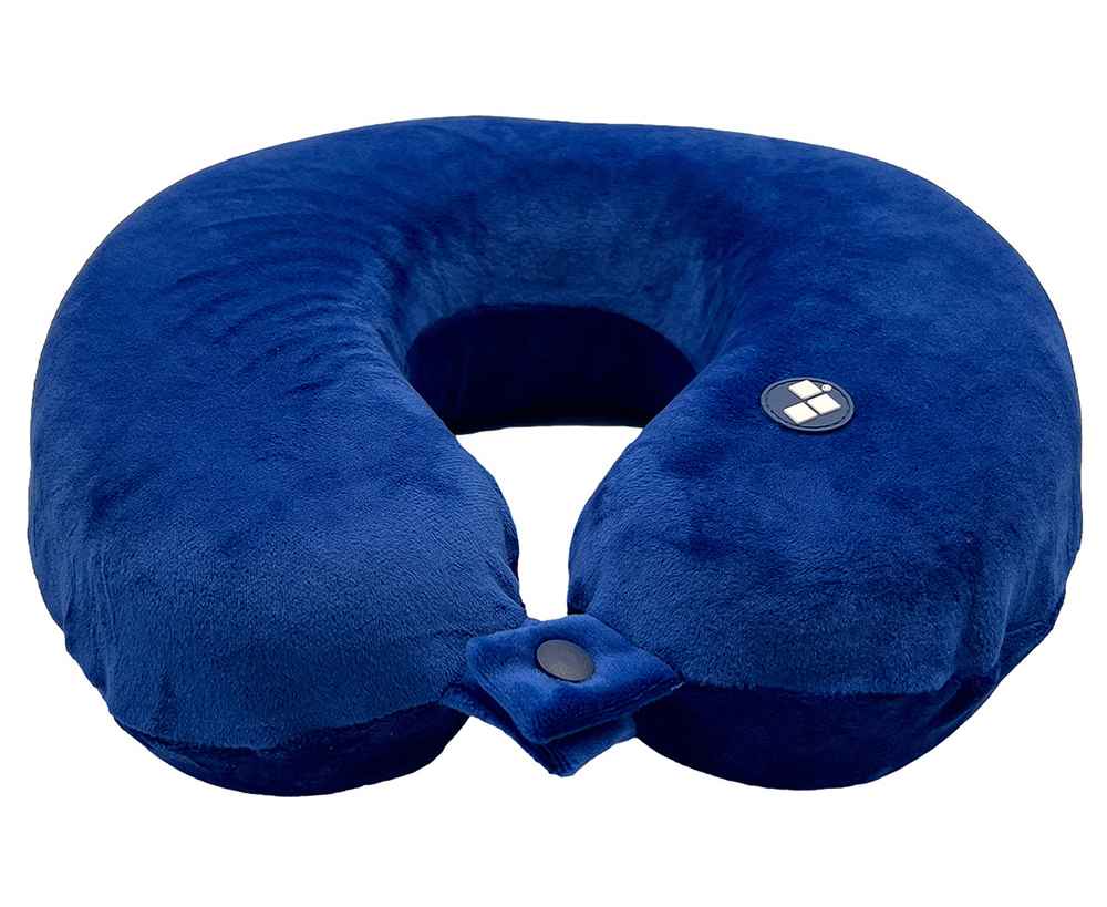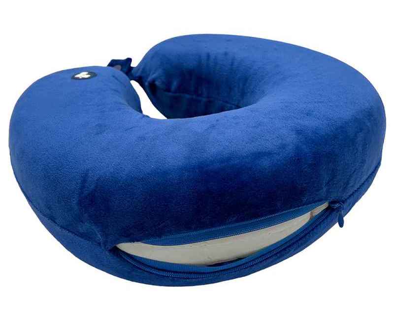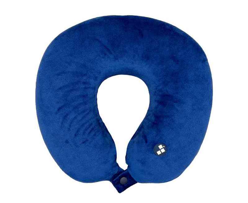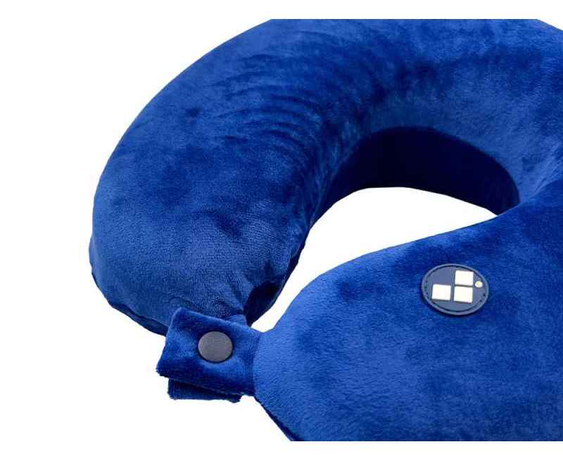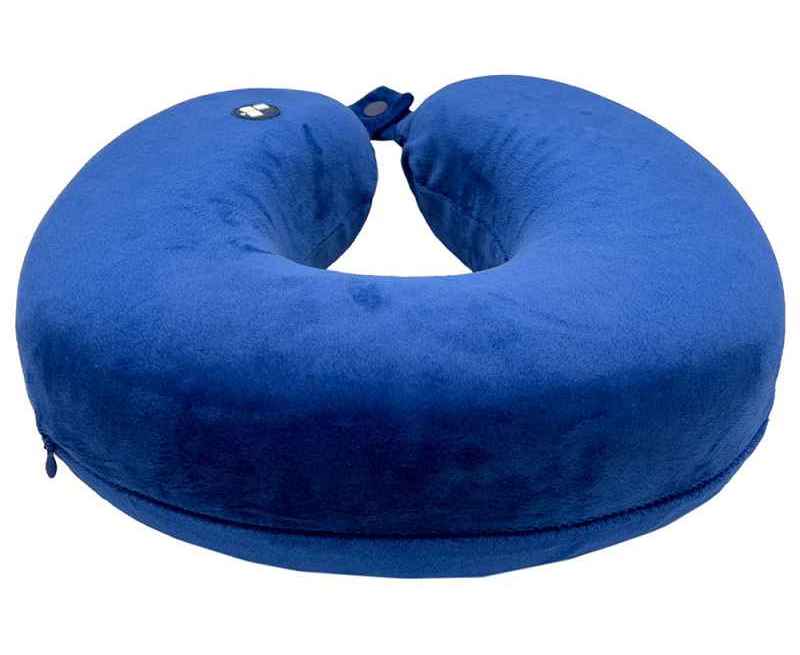 Удобная кнопочная застёжка надёжно фиксирует подушку на шее, а в комплект входит прочный круглый чехол на молнии — для компактного хранения и перевозки.