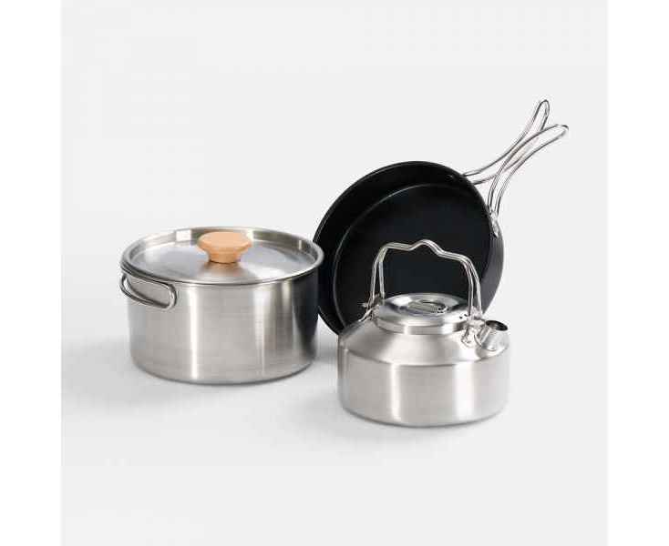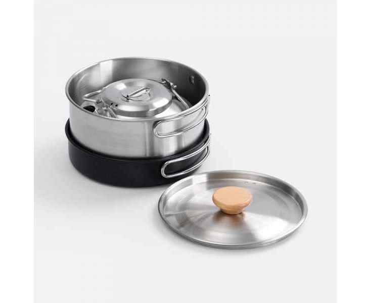 Набор компактной посуды Stackado незаменим для пикников, кемпинга, альпинизма, рыбалки и других приключений на свежем воздухе. В набор входят кастрюля, сковорода и чайник — все необходимое для полноценного приготовления блюд: от утреннего кофе до обеденного супа и ужина с жареными овощами.