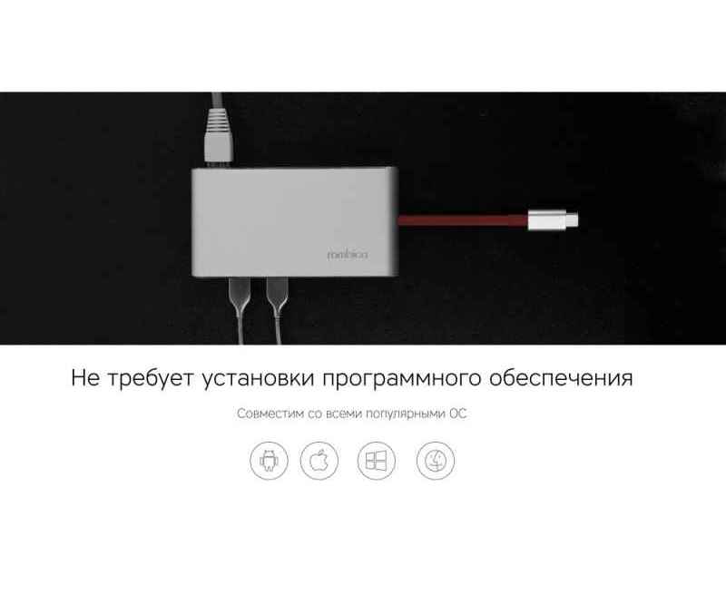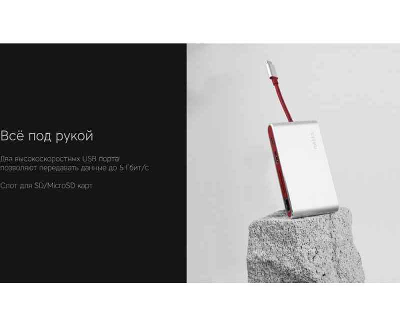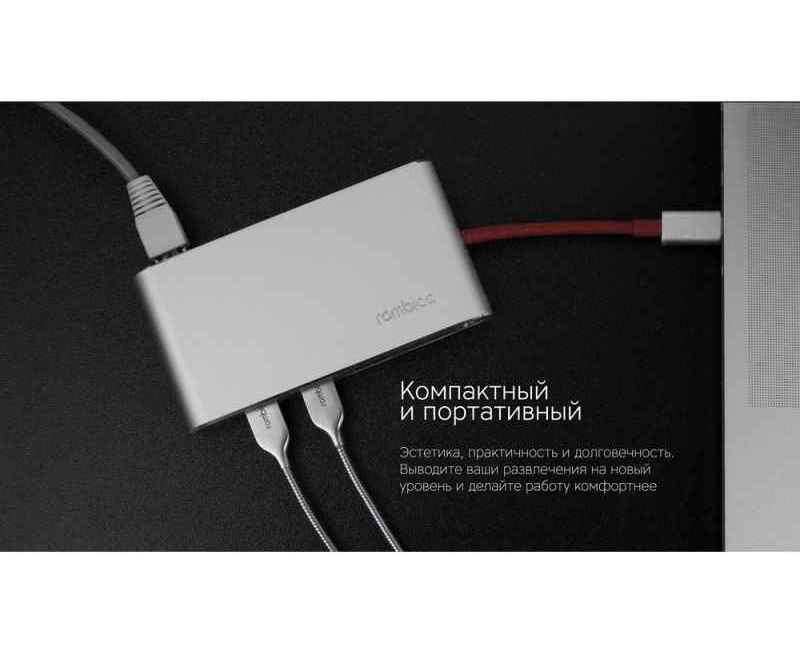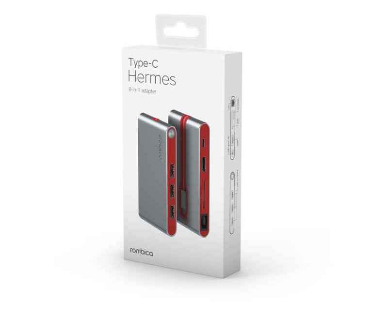 Подробнее о Rombica Хаб 8-в-1 Type-C Hermes, USB 3.0 x 3, Type-C PD, HDMI, LAN, картридер, 595604p
