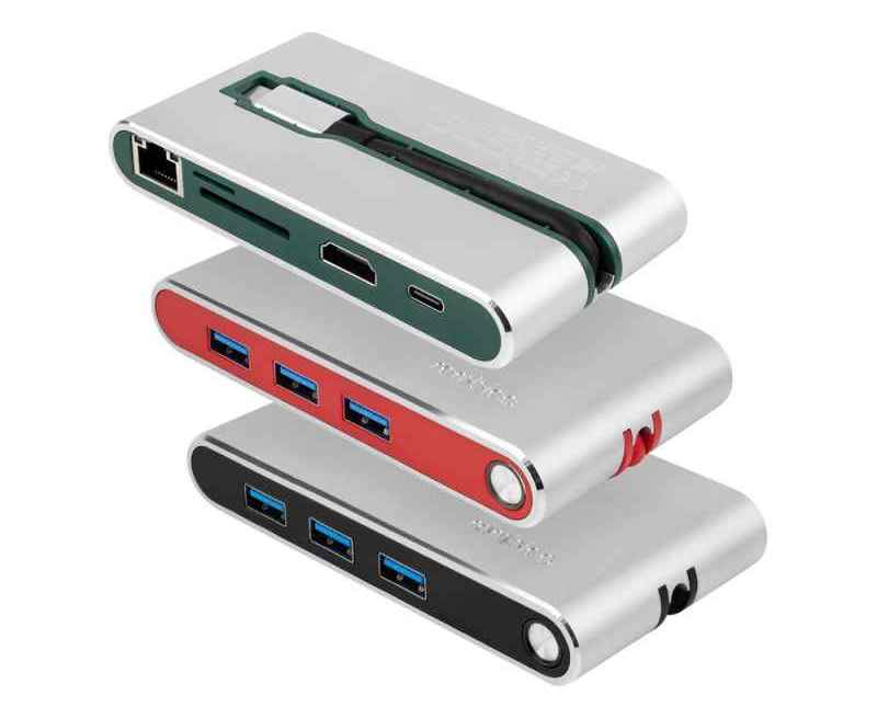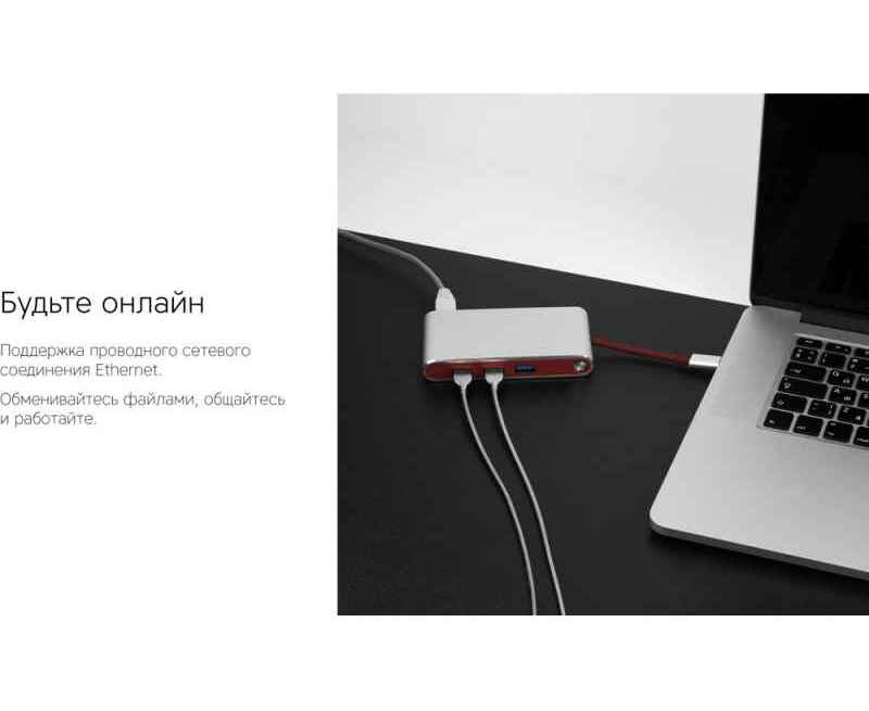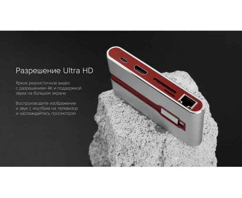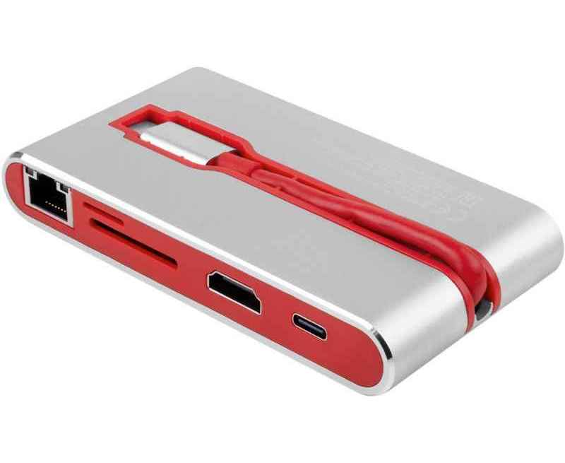 Адаптер 8-в-1 Rombica Type-C Hermes Red.