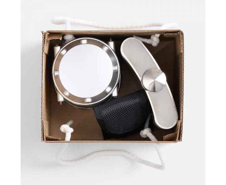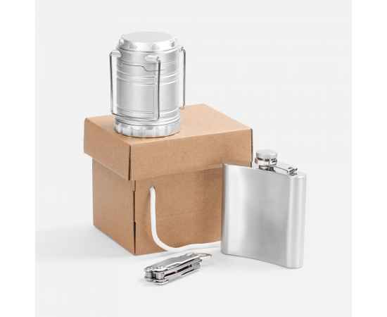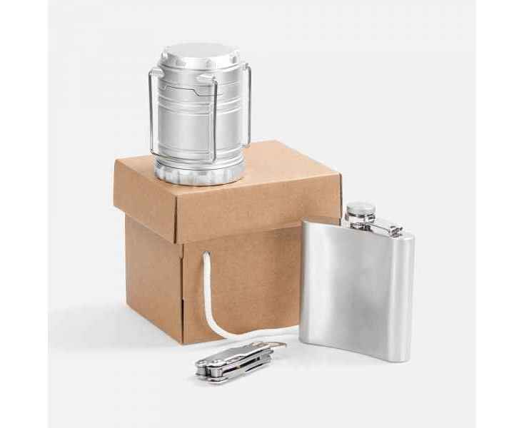 Практичный сет для похода в лаконичном и стильном исполнении: мультитул-плоскогубцы, кемпинговый фонарь с дальностью луча 20 метров и классическая фляжка.