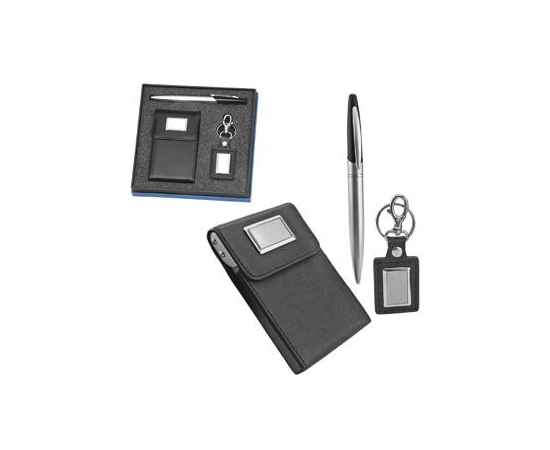 Набор: брелок, визитница и авторучка,,размер коробки: 16 х 15,3 см,,Материал: искусственная кожа, ,метал