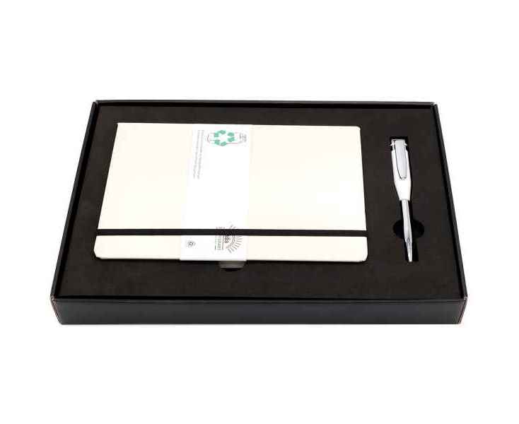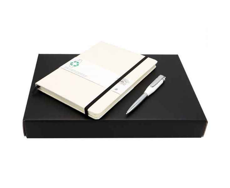'Fantazy stream' — Подарочный набор в элегантной цветной коробке черного цвета с конструкцией крышка-дно. Внутри расположен ложемент, специально разработанный для надежного и аккуратного размещения всех элементов набора. В набор входят стильный ежедневник с плотной обложкой (арт.51013.02) и металлическая ручка с флэшкой на 64GB (арт1043.01), идеально дополняющая комплект. Ежедневник имеет высококачественную обложку и удобный формат для записи важных дел и заметок, а ручка c флешкjq сочетает в себе элегантный дизайн и практичную функцию хранения цифровой информации. Такой комплект станет идеальным подарком для деловых людей, ценящих сочетание классики и современных технологий.